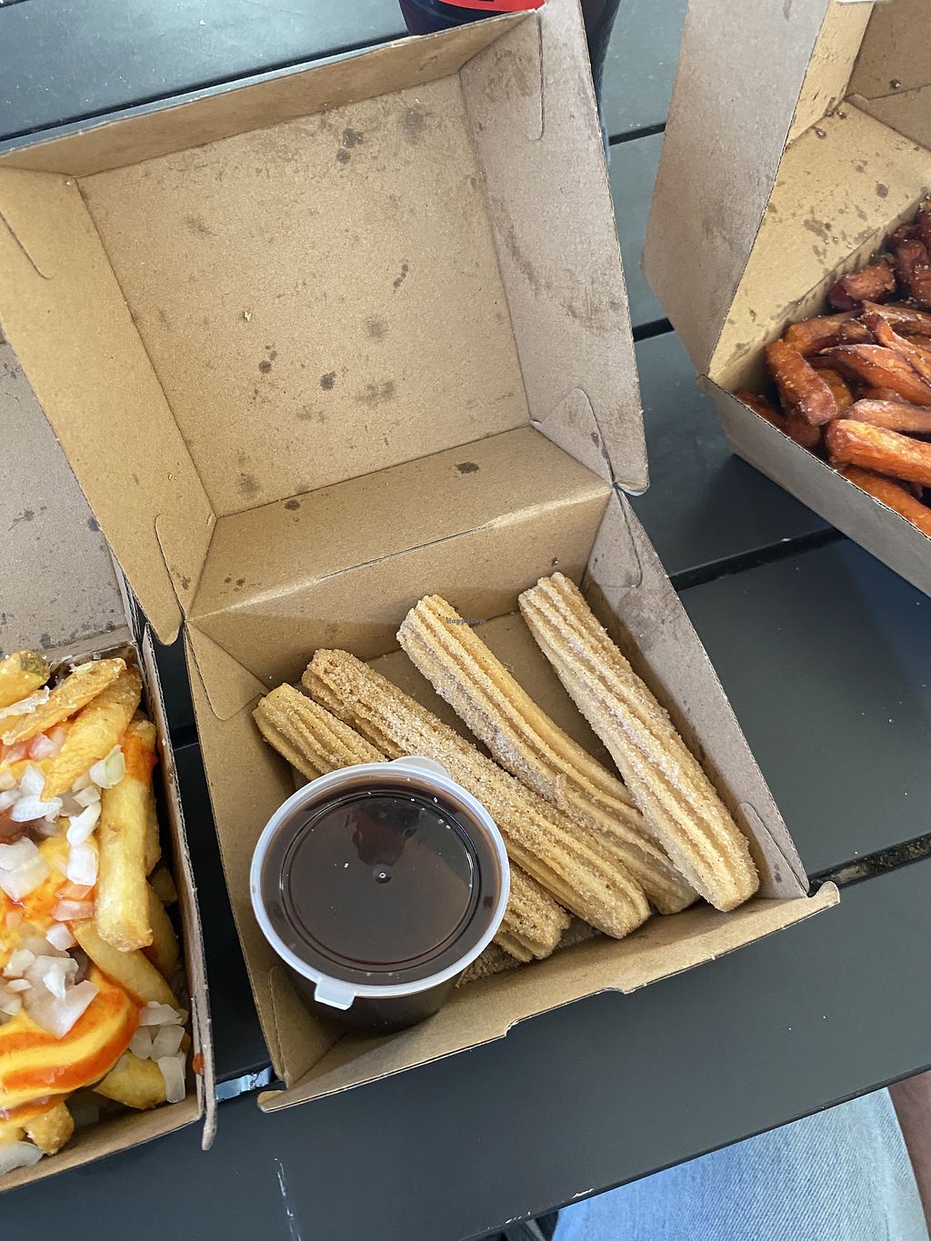 Wir waren heute im „Lord of the Fries“ und wurden von den Pommes sehr enttäuscht. Versalzen und nicht ansatzweise knusprig. Schade. Keine Sitzmöbel