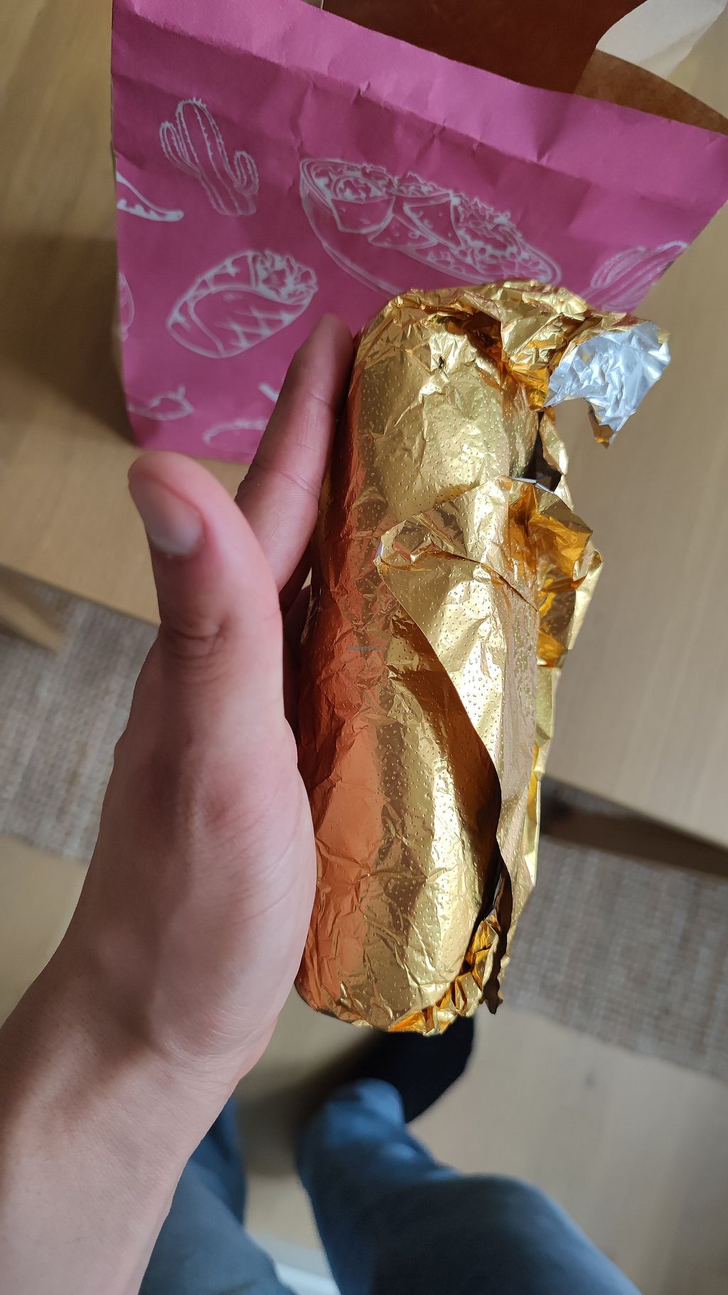 [PL] Wegańskie burrito było dobre, w szczególności wegańskie mięso. Płatki kukurydziane we wrapie też były super. Nie warto brać guacamole.