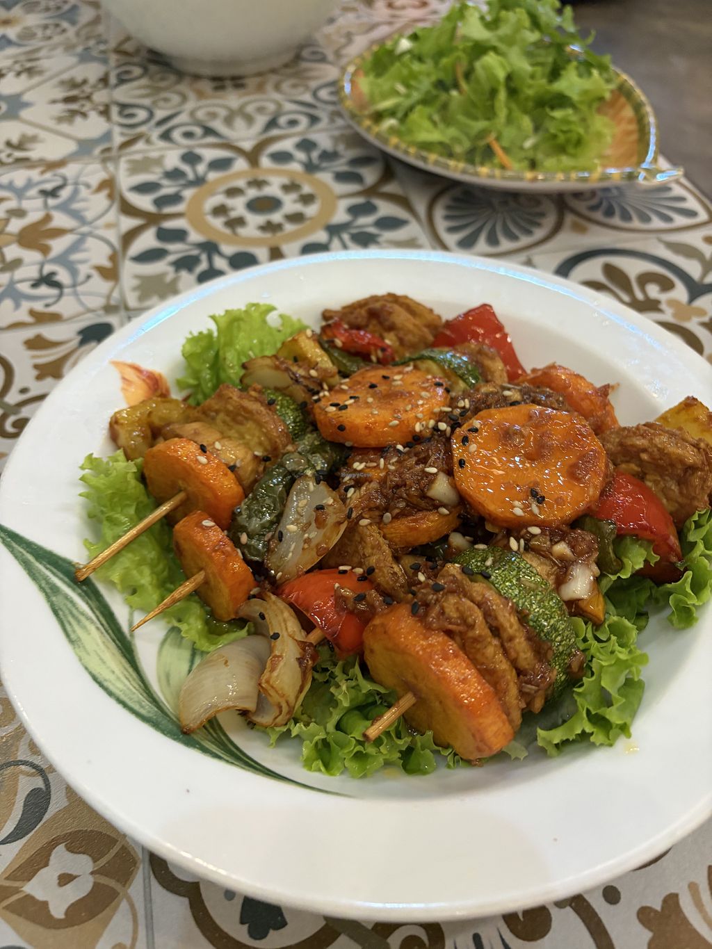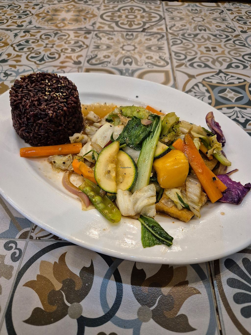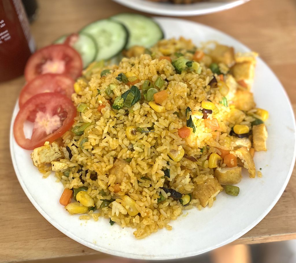 Lovely fresh veggies and tasty seitan in the noodle dishes we had, bright light decor and great vibe