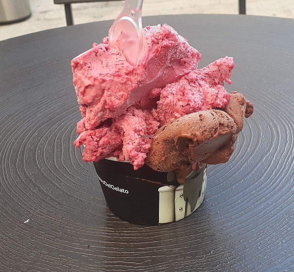 We saw 4 vegan flavours available- we tried chocolate sorbet, Patagonia (red fruits) and fruitilla (raspberry and something else I think, sweeter than the Patagonia flavour). There was also a mandarin/orange flavour.