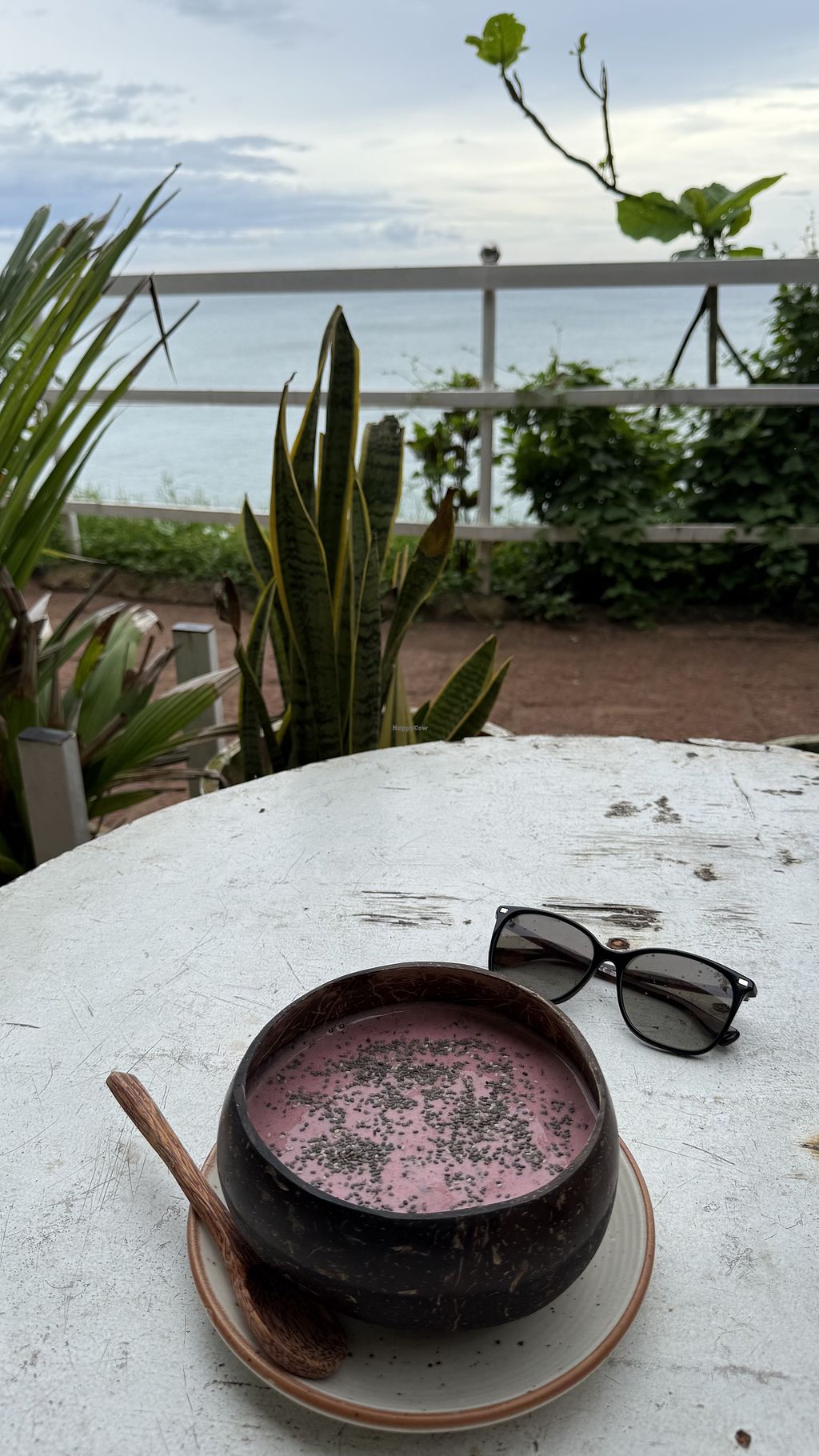Est. Dec. 2022. A peaceful, fully vegan cafe with views of the sea. Located next to a yoga studio. Dishes may include a tofu burger, avo smash, tofu scramble, spinach pesto crepes, and more. Also offers smoothies, detox juices and desserts. Open Mon-Sun 8:00am-10:00pm.