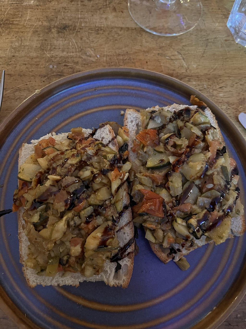 Everyone enjoyed the food. My green fettuccini was delicious, not too oily and tasty. The bruschetta (vegan option) was also tasty and topped with both zucchini and eggplant. Of note, the vegan wines are also marked on the drinks menu.