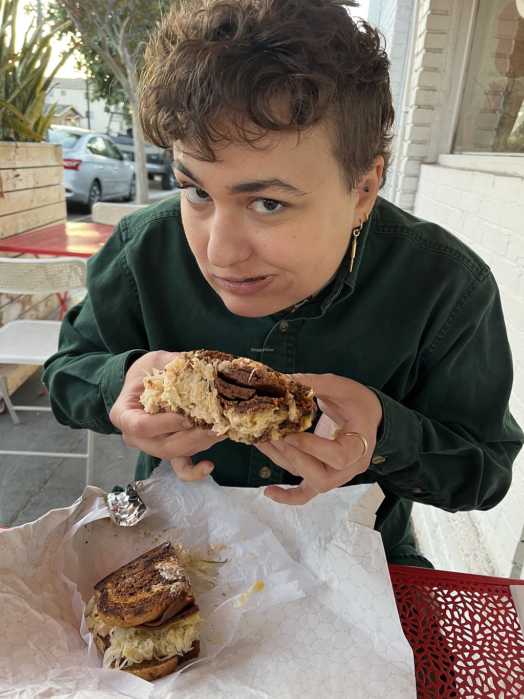Delicious sandwiches and sides, like a high-end deli. The pastrami French dip is mind-blowing and the egg salad sandwich is the best I've had, vegan or otherwise. Love the potato salad and the strawberry lemonade is delicious. Lots of baked treats , too. This place is such a gem.