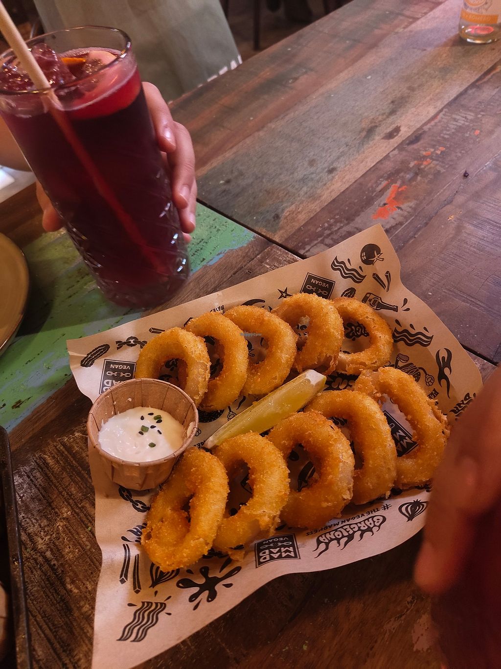 The Calamari starter was my favourite. The tacos were also delicious, its a great spot for your fatty food fix
