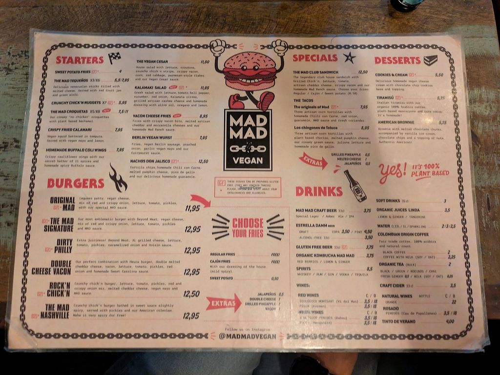 I absolutely loved Mad Mad Vegan!!!! Me and my mum went twice whilst visiting Barcelona because the food and vibe was just too good, and it’s also so good to know that everything is fully vegan so it made it even more appealing for us to go back and try more on the amazing menu. The staff were really lovely and friendly as well which was a great bonus, after trying various bits of the menu I really loved the double cheese heura burger and the chicken ceasar salad both 10/10 LOVE THIS PLACE❤️