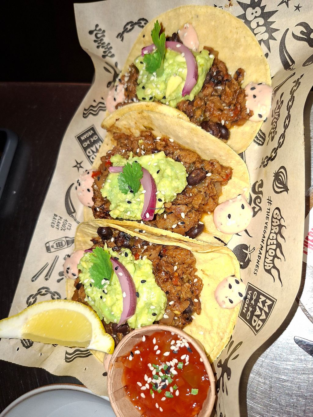 The Calamari starter was my favourite. The tacos were also delicious, its a great spot for your fatty food fix