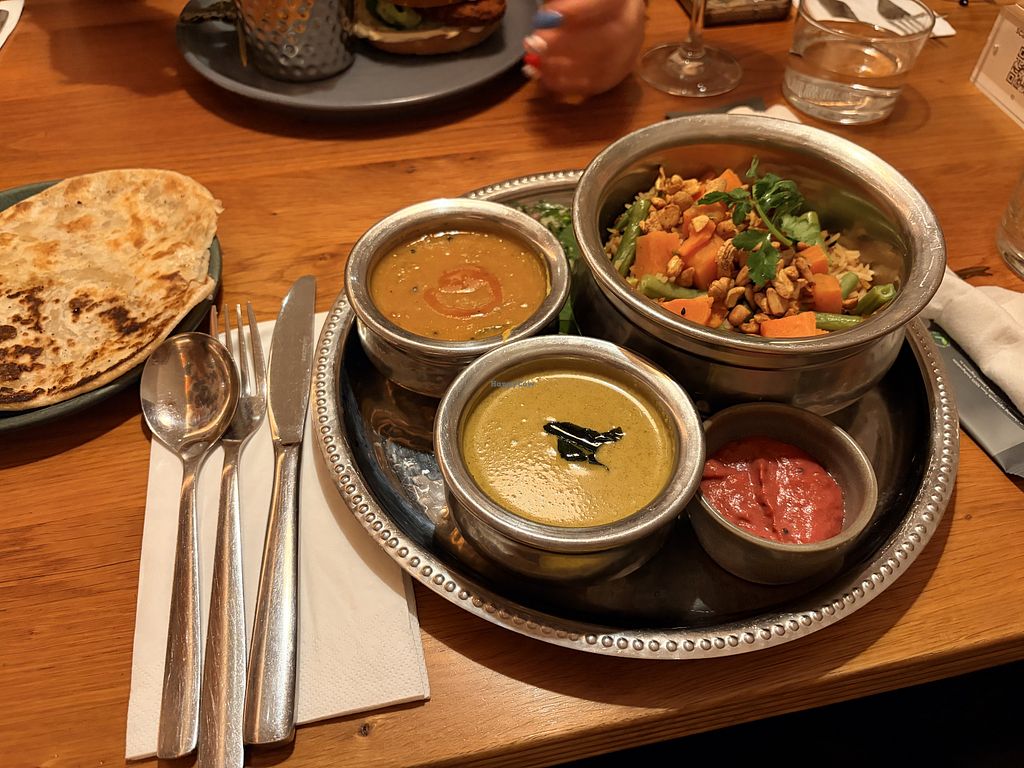 Loved this nicer vegan restaurant for a fancy dinner. The inside was beautiful and not too overly fancy - we felt comfortable in jeans. The food was superb. I got the nav rattan korma which was incredible. Desserts weren't my favorite compared to some of the incredible vegan bakeries I had in London, but everything else was amazing.