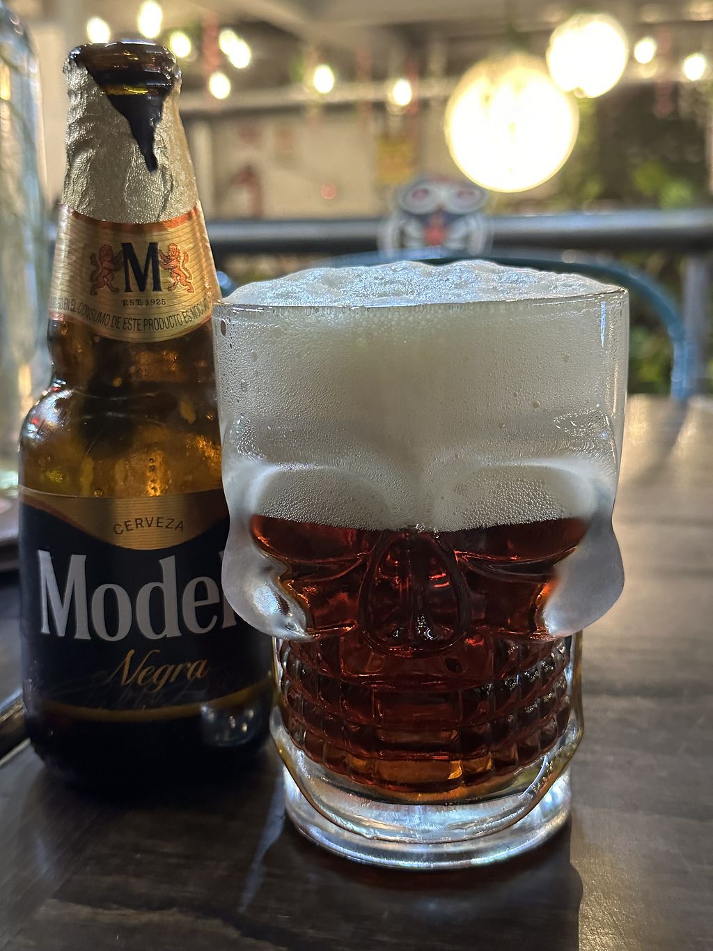 Tasty and affordable pizzas! And a true experience with the iced skull-glass for Modelo beer 😁