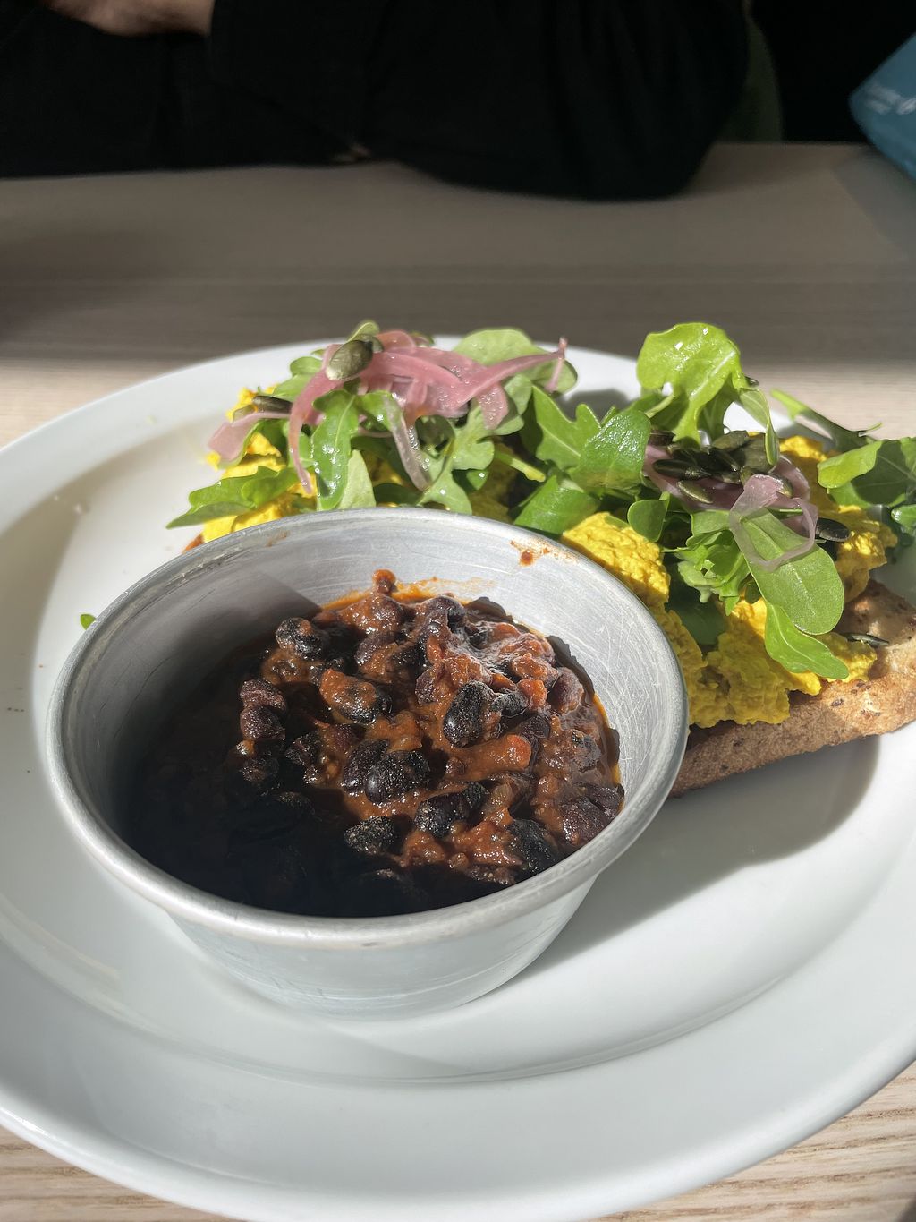 Read moreFirst impressions were good - lovely calm vibe with a pretty little courtyard. I ordered scrambled tofu with side of chipotle beans & my partner had the full breakfast. Coffee was free with breakfast which was a nice touch.