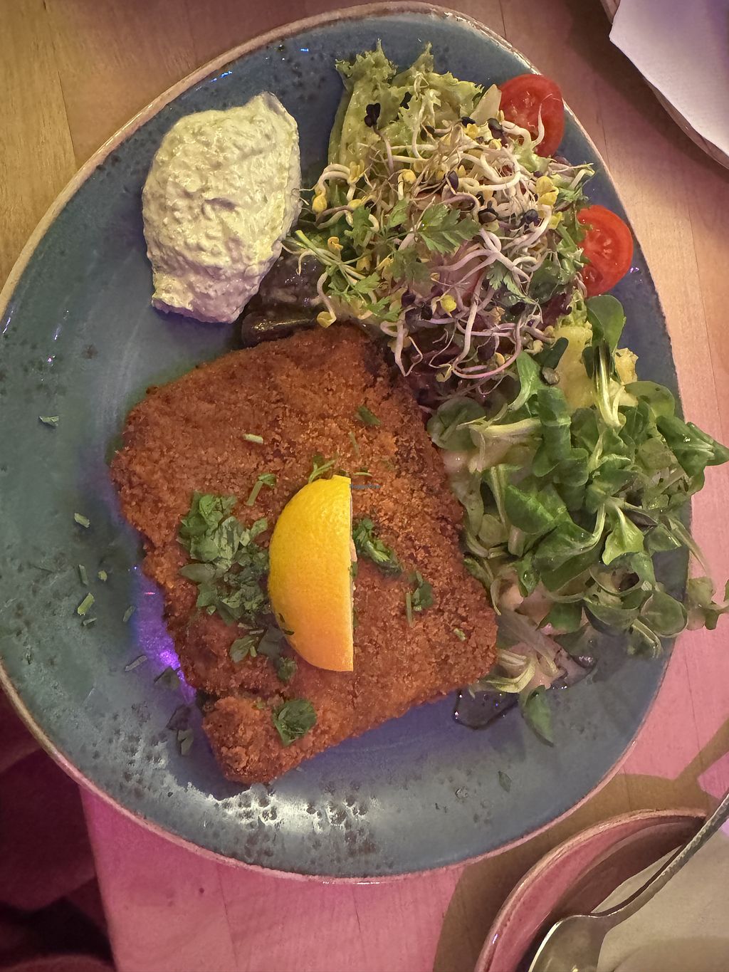 I had the ravioli while my partner had the Schnitzel, sharing a Kaiserschmarrn. Everything tastes amazing but the Ravioli struck me the most with the amazing flavor. Creamy, nutty, and just so well made. Highly recommend.
