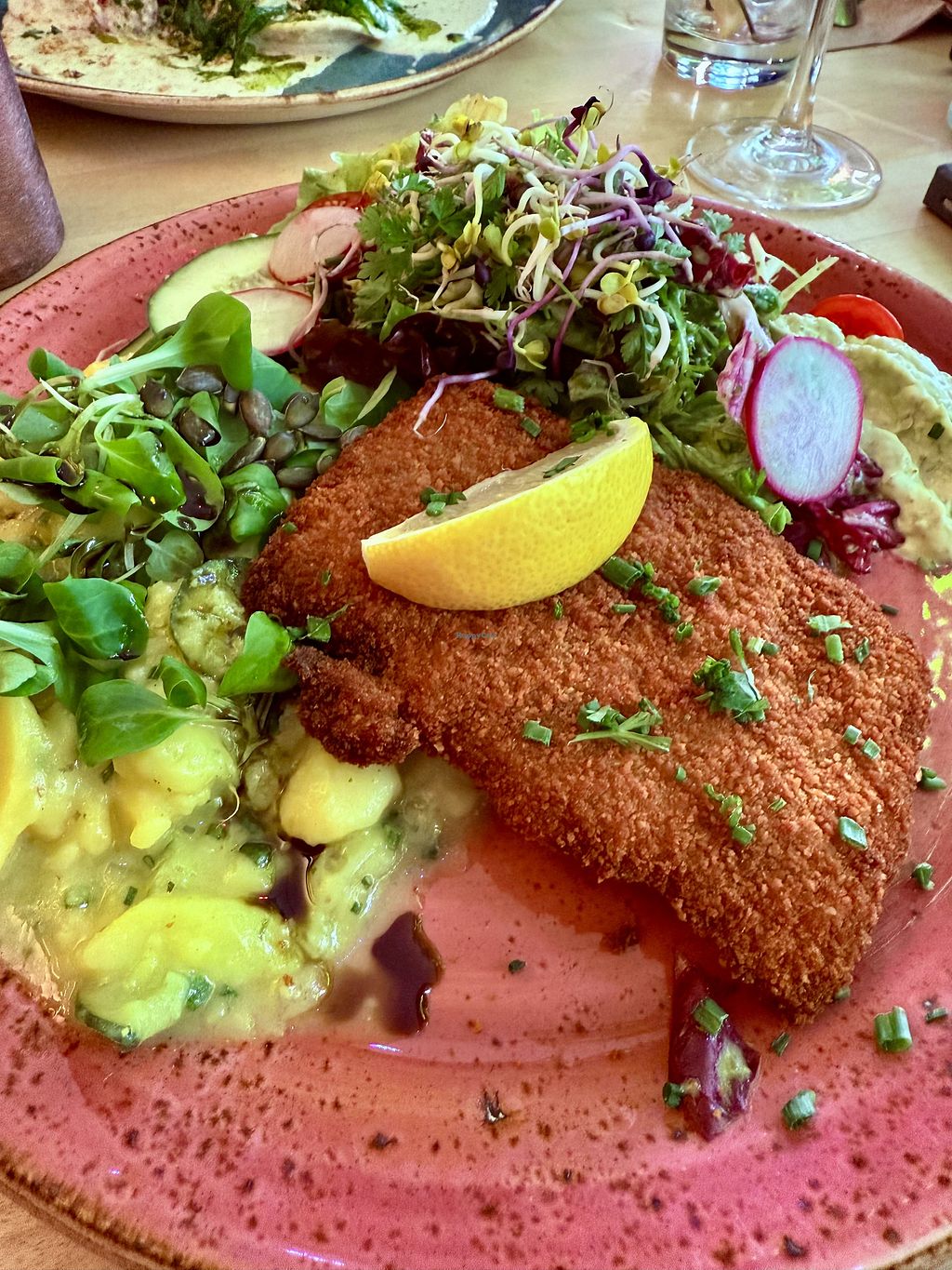 Vegan Schnitzel (opt for the potato salad over fries!) Side salad was …