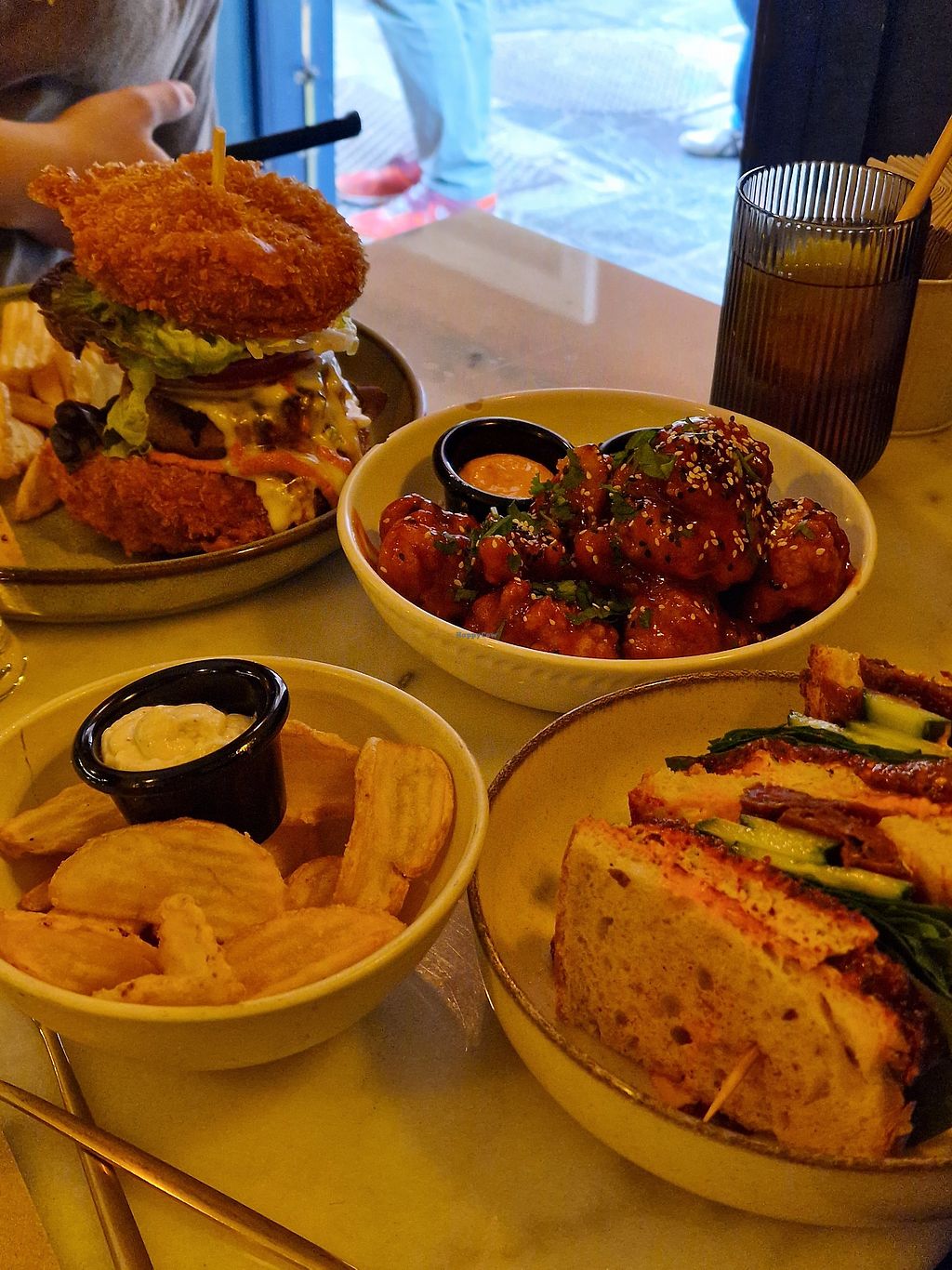 We went there twice for a dinner and food was amazing. We had gouchjang cauliflower, garlic parmesian cauliflower and dumplings and the holy burger. I was impressed how the camembert melted in the burger.