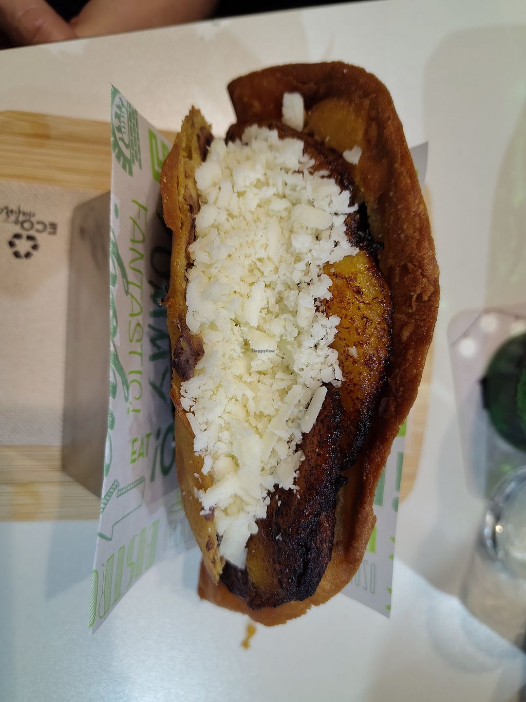Delicioso todo! Tienen tanto arepas como chapas, empanadas operadas y pabellón que se pueden veganizar. Comimos dos empanadas operadas, una reina pepiada con caraotas y queso vegano y otra de pabellón riquísimas. Además pedimos tequeños veganos que estaban muy ricos.