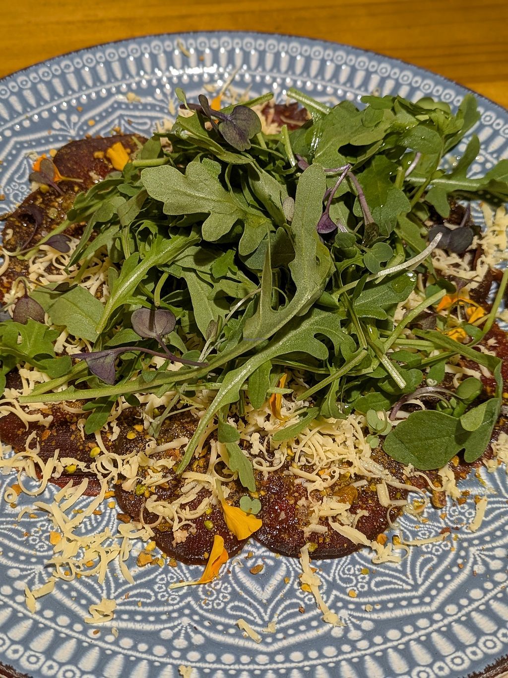 I’ve been here twice and absolutely loved the food, the friendly servers and the atmosphere. They have a couple takes on local food which I really loved, the Nuestra Causa de Limeña y the Pasta Fresca which is very much like the classic Spanish canelones served with mushroom bechamel. And I loved the Panna Cotta! The nachos were great as was the enoki mushrooms although, I wanted a bit more spice and salt! All in all amazing food, service and of course 100% vegan! And, having dogs in the dining room is always a big plus for me.