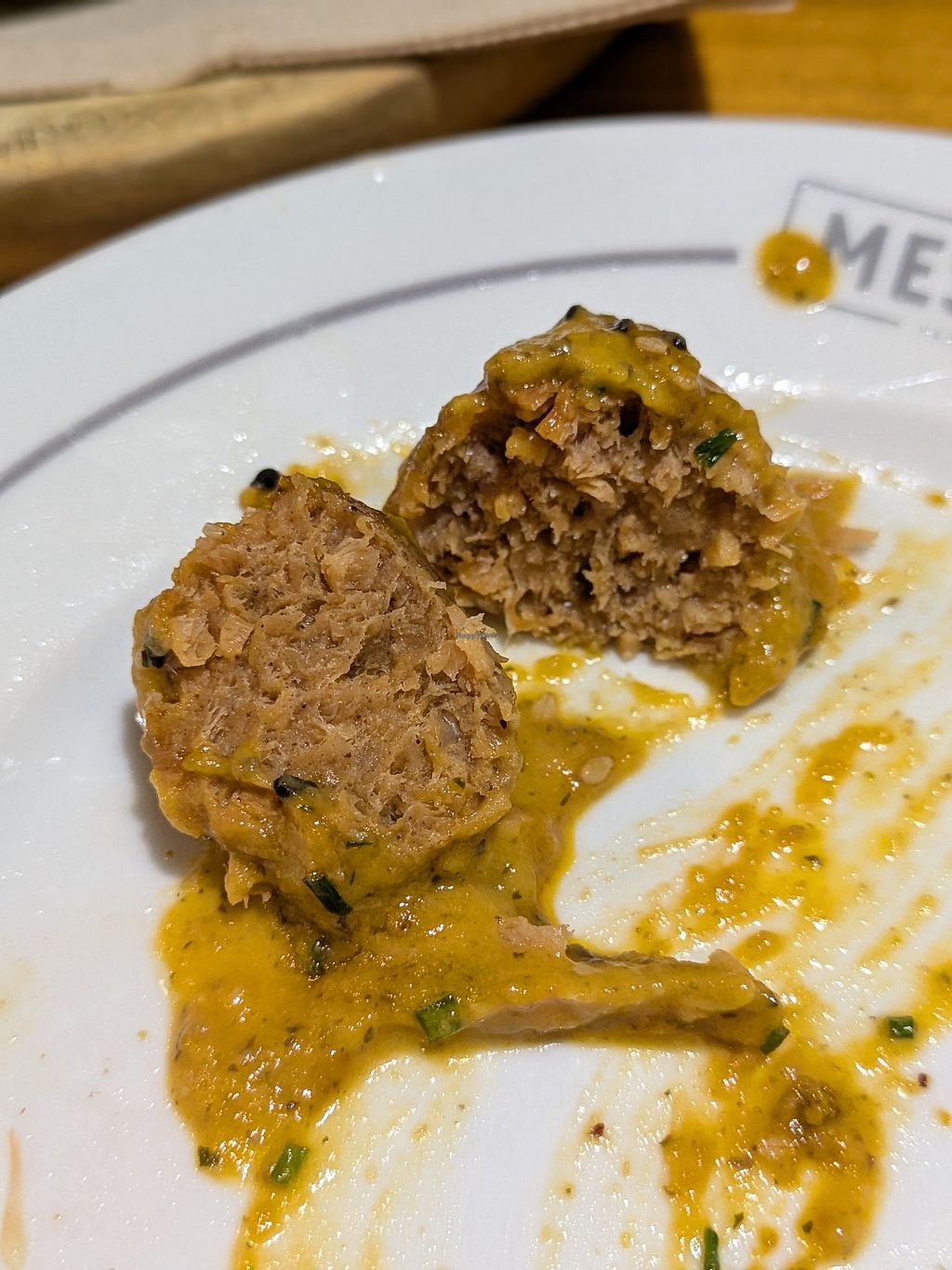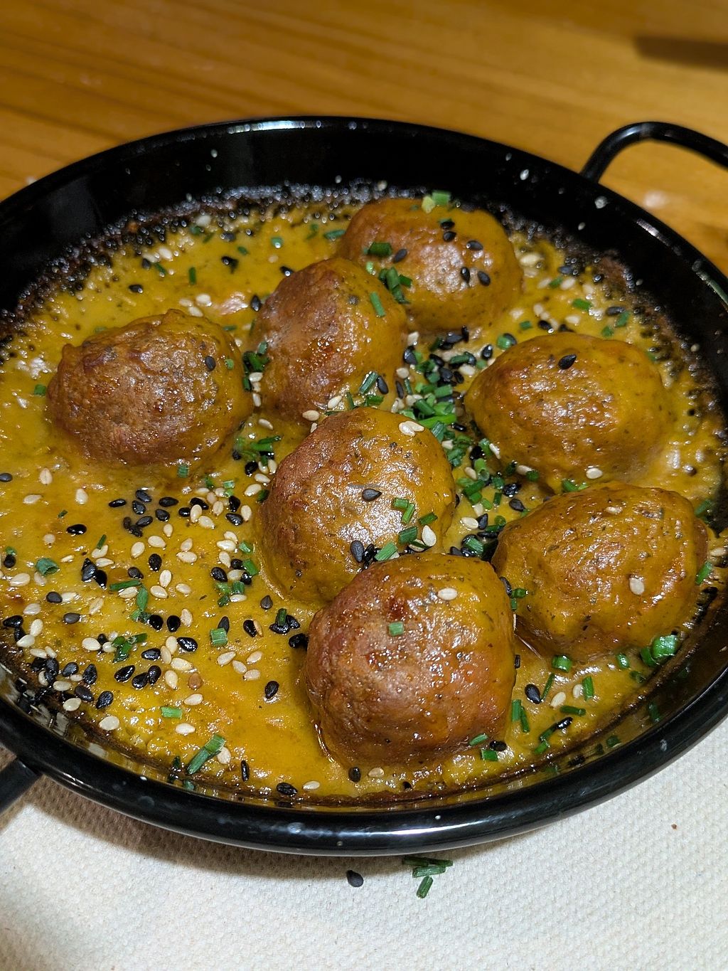 Cons: Las albóndigas tenían mucho picante, Las croquetas tenían poca sal