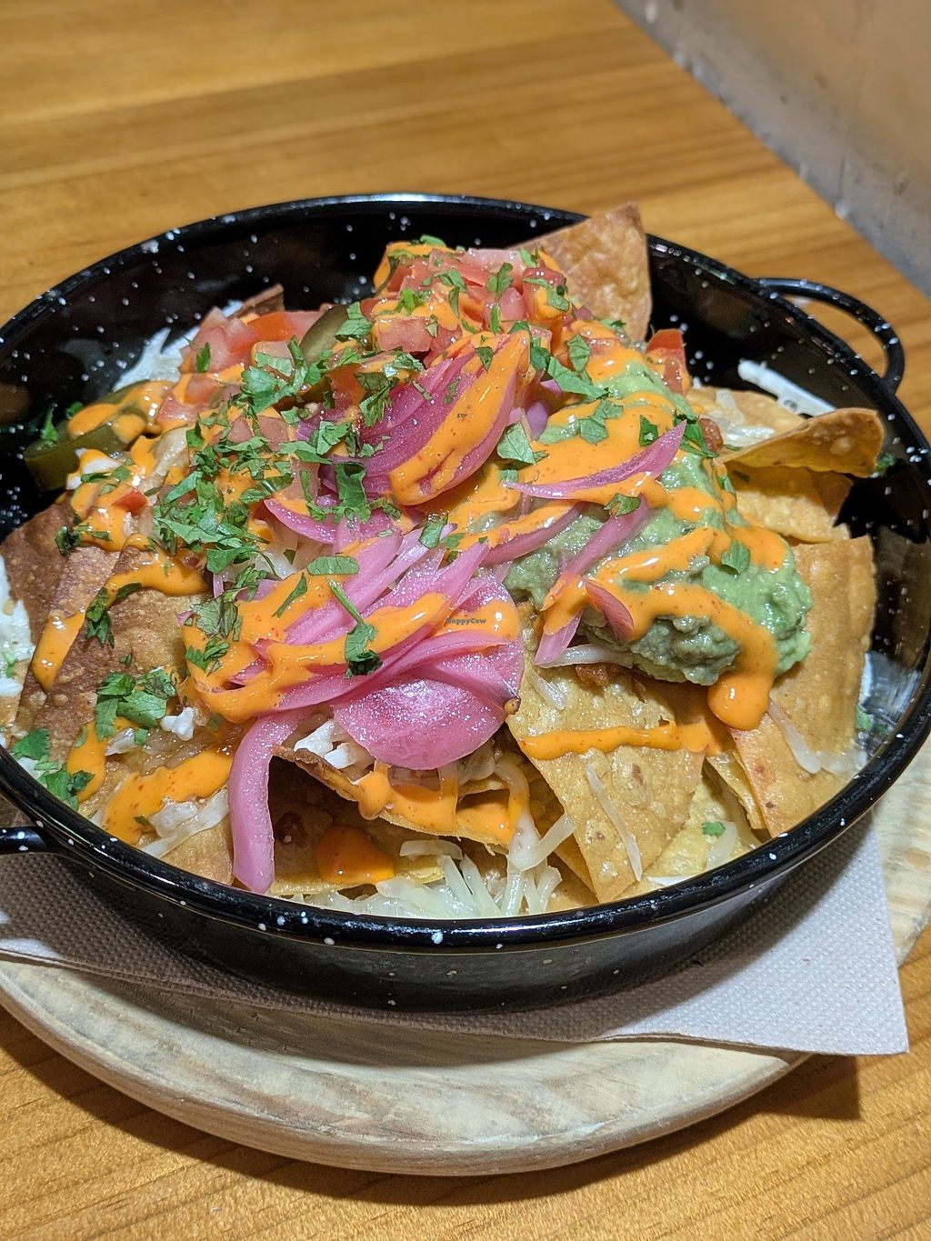 Excellent nachos, pad Thai, meatballs. Good service, good vibe.