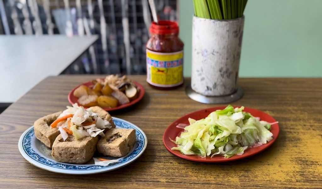 Nice vegan food in a tiny restaurant. They don’t speak English so we pointed to the food what a guy had just ordered. We ate heavenly soup, noodles, stinky tofu (which was actually the best we had in Taiwan, and it was very mildly stinky) and some rice with veggies and tofu. We paid 270 NTD for 2 persons, and we got so full that we had to do some walking before returning to our hotel. The ladies there are super nice and helpful. Definitely recommend!