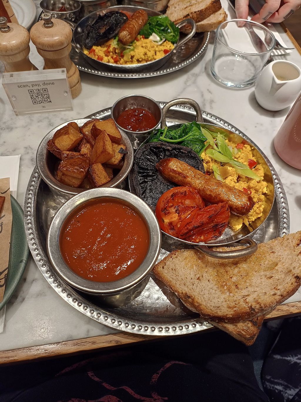 The breakfast was very nice, but I would have liked a warning about how spicy the ketchup and beans were. I love spicy food, but the beans and ketchup were almost too spicy for me. The beans were just described as "maple baked beans", so I'm really not sure why they were so spicy. The ketchup was not mentioned on the menu, but again I'm not sure why it was so spicy. If you struggle with spicy food then I'd advise not getting this breakfast. The rest of the breakfast was lovely though, especially the rashers and the spinach.