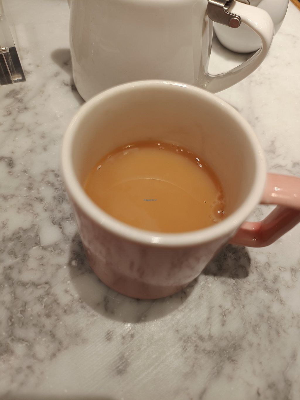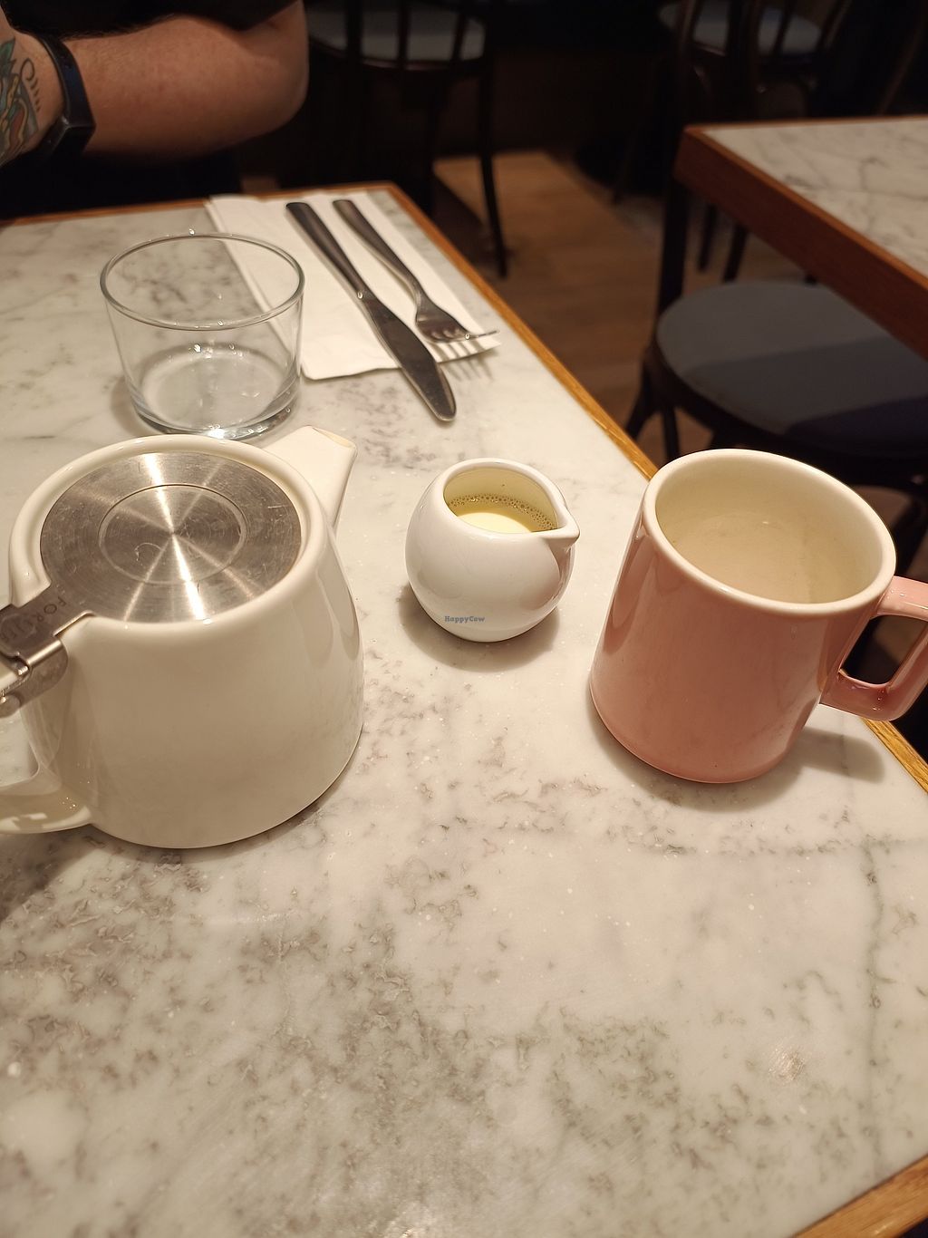 I got a full English breakfast with added rashers, and a pot of everyday tea. I also tried some of Purp's oat milk latte.