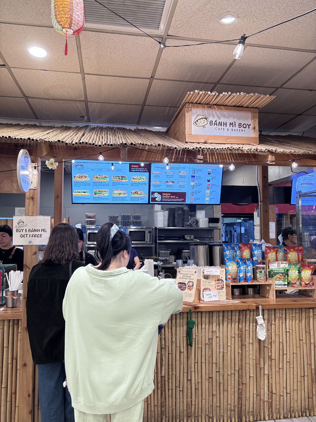 there are so many options in this food hall!!!…. if you’re not vegan. unfortunately only a few of the vendors have vegan options. thankfully banh mi boy is here to save us with vegan spring rolls and banh mi that are both delicious!
