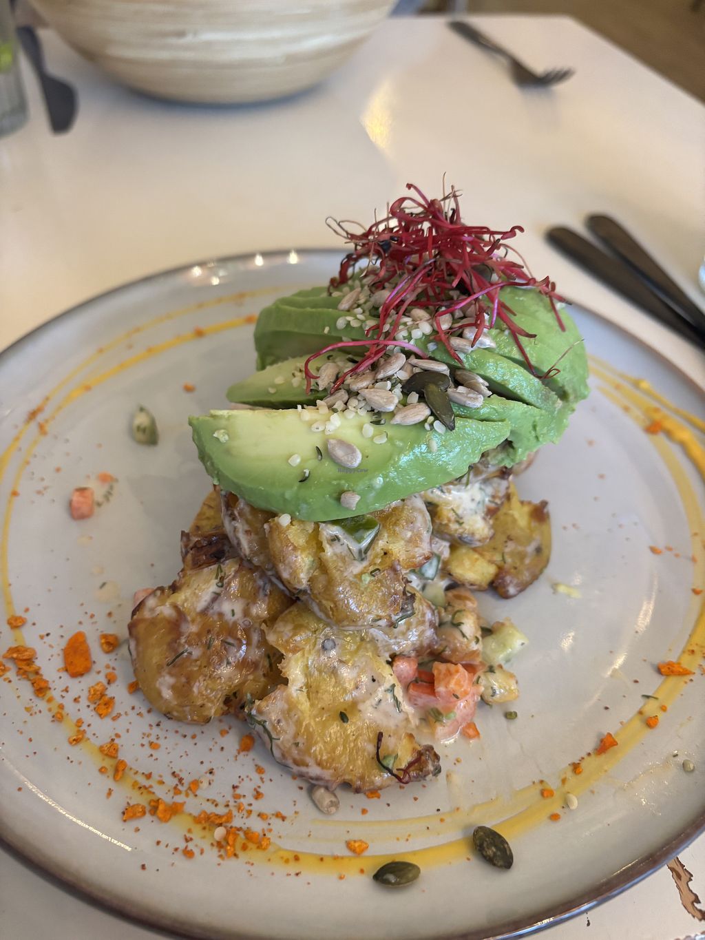 Ik ging voor de vegan avocado toast en die was fantastisch. De basis was een smaakvolle selderij toast met daarop aardappelkoekjes, romige avocado en een heerlijke saus die alles perfect samenbracht. Een originele combinatie en echt smullen van begin tot eind!