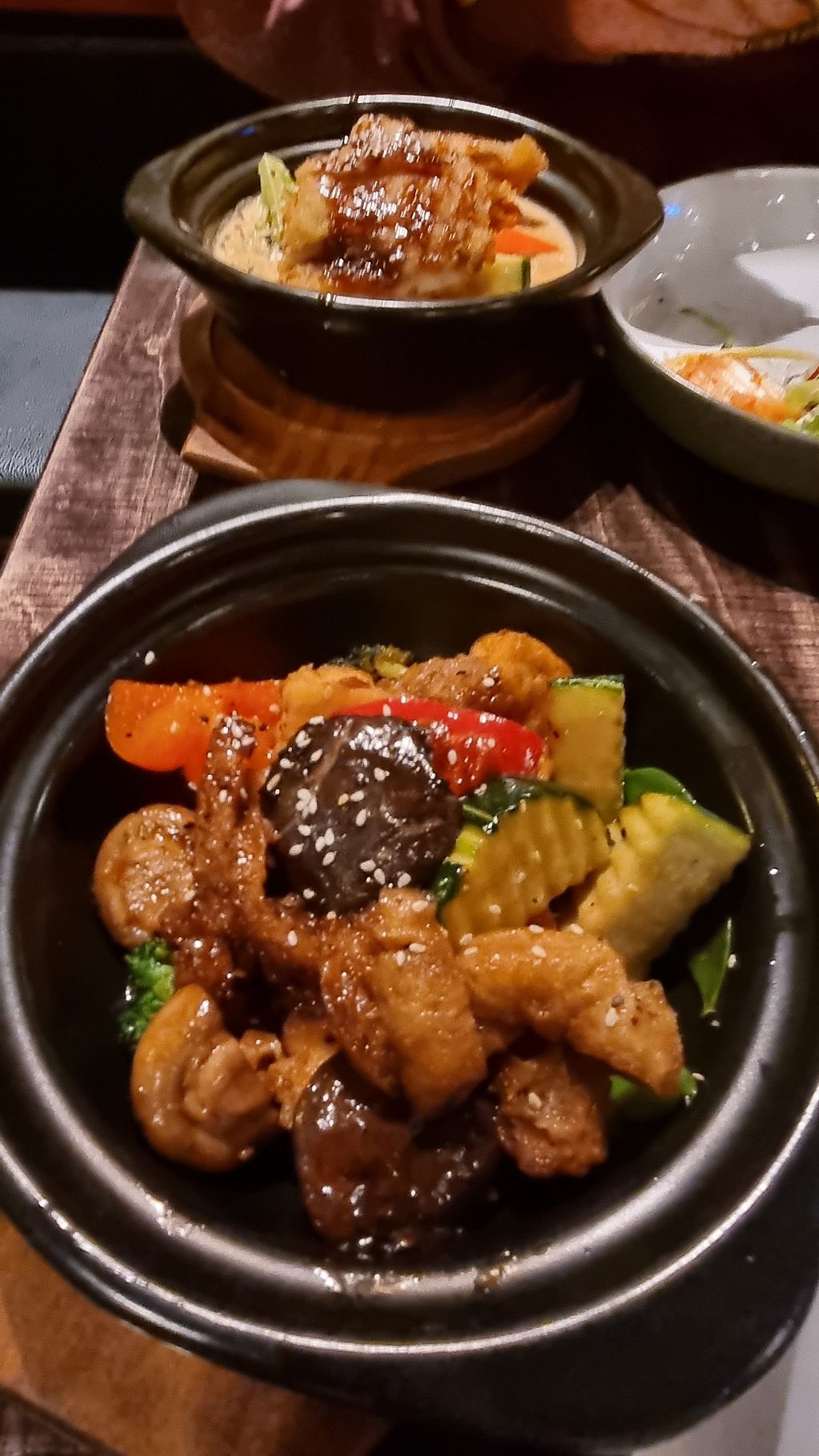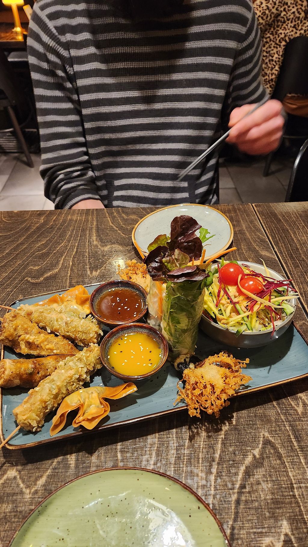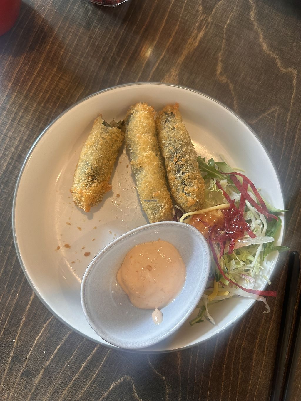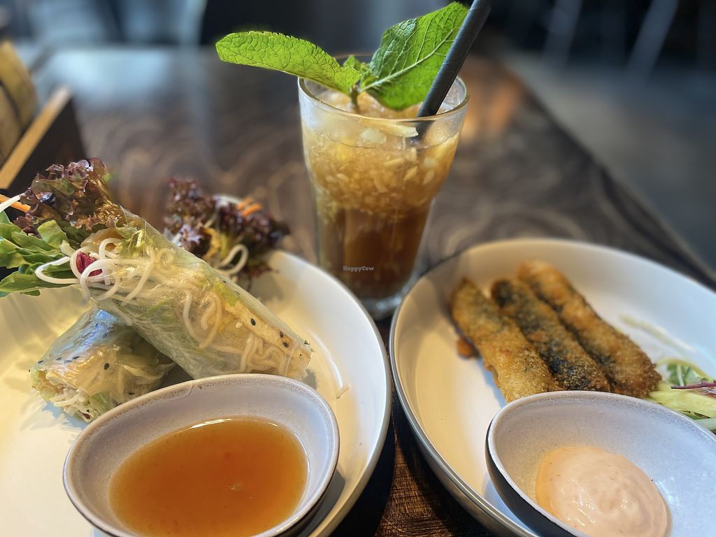 Vorspeisen: veganer Backfisch, panierte Enoki und paniertes, veganes H…