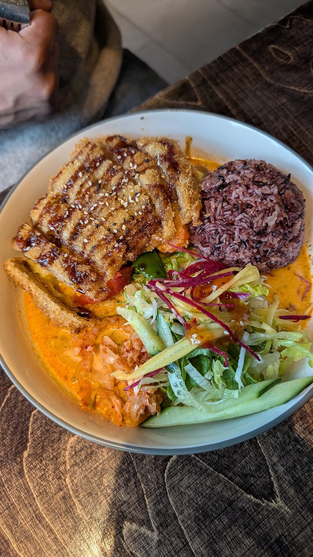 Crispy seitan curry with black rice and vegetables. Number 55 in the m…