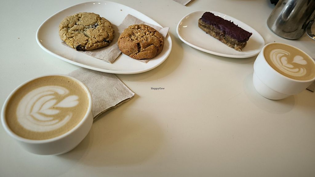 We had cappuccino and flat white with oat milk and two vegan cookies. they didn’t have other vegan cakes but the cookies didn’t disappoint!