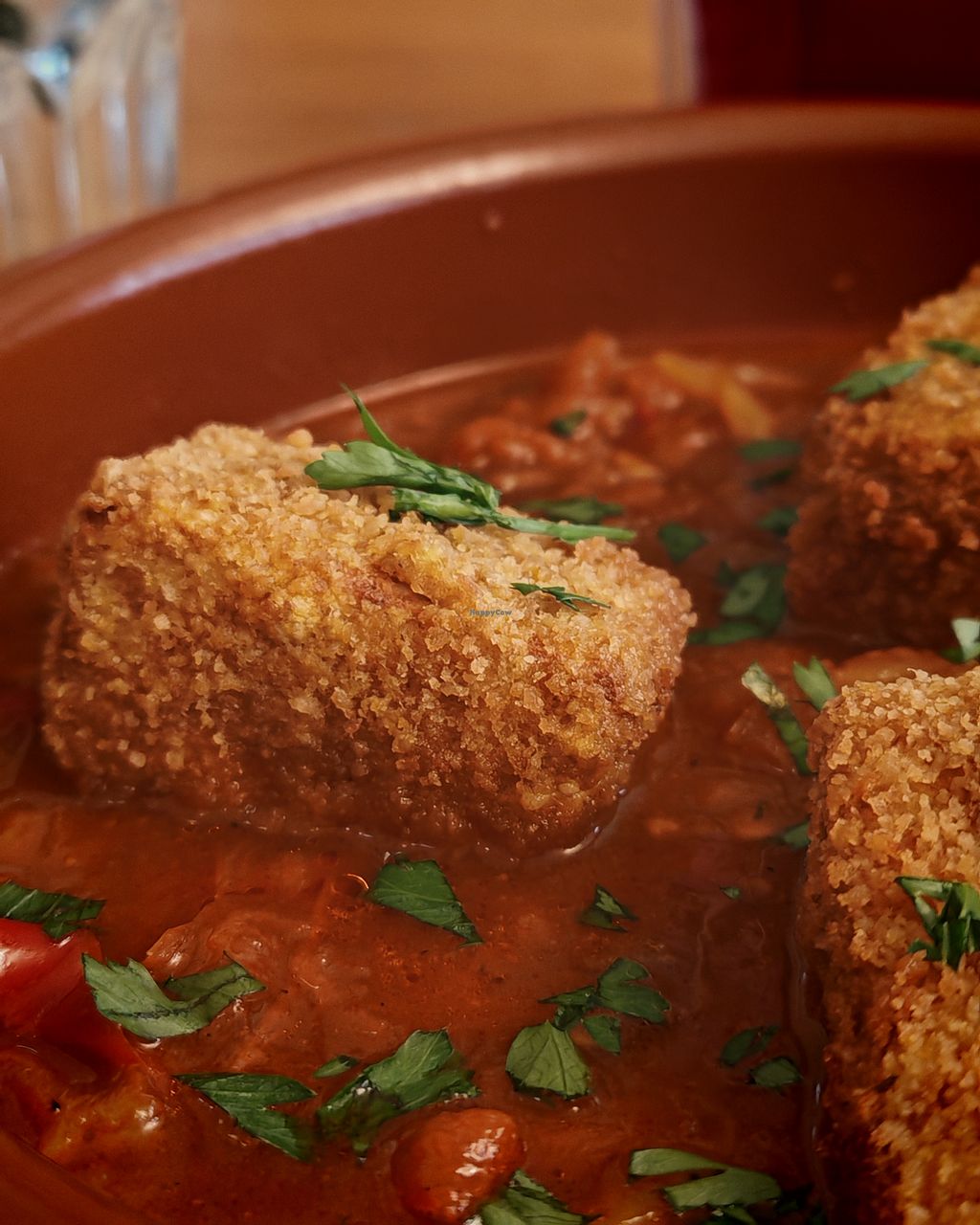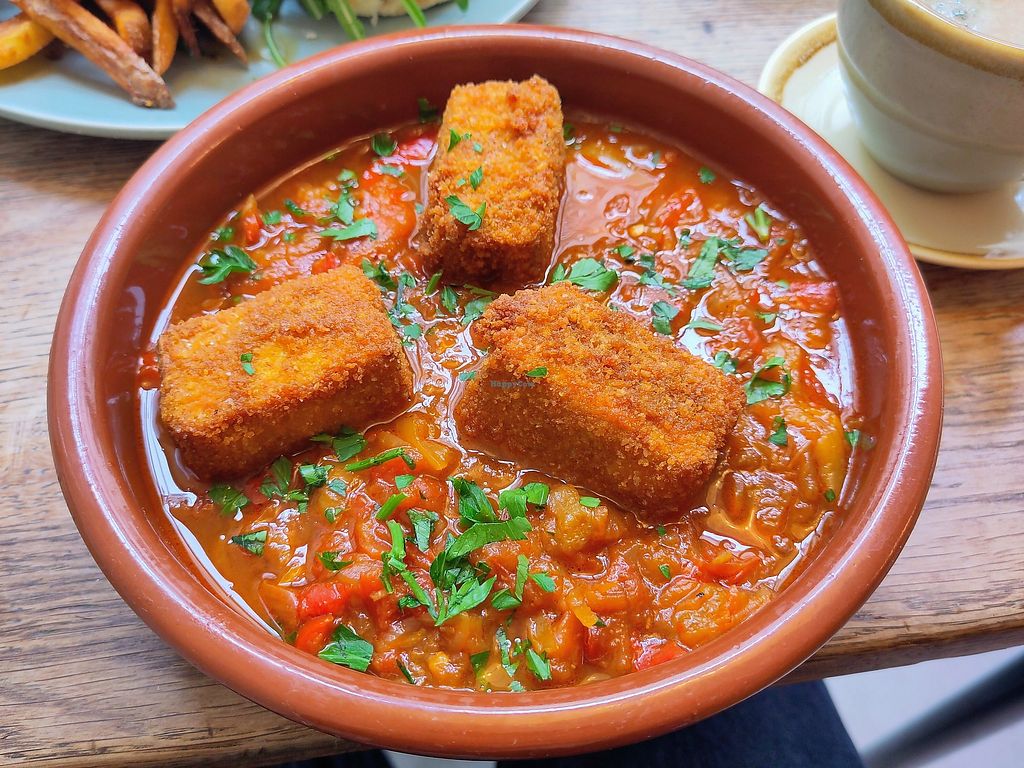 Chakchouka and organic tofu (Peppers, tomatoes, fried tofu, and parsle…
