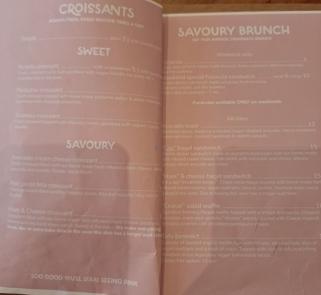 All vegan menu with great food and coffee. Had "egg" sandwich and "egg" Benedict, and pistachios crossiant and coffee. Everything tasted so good😍