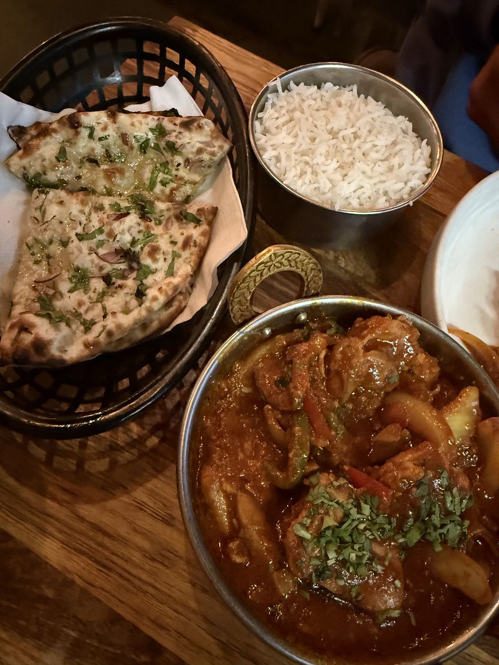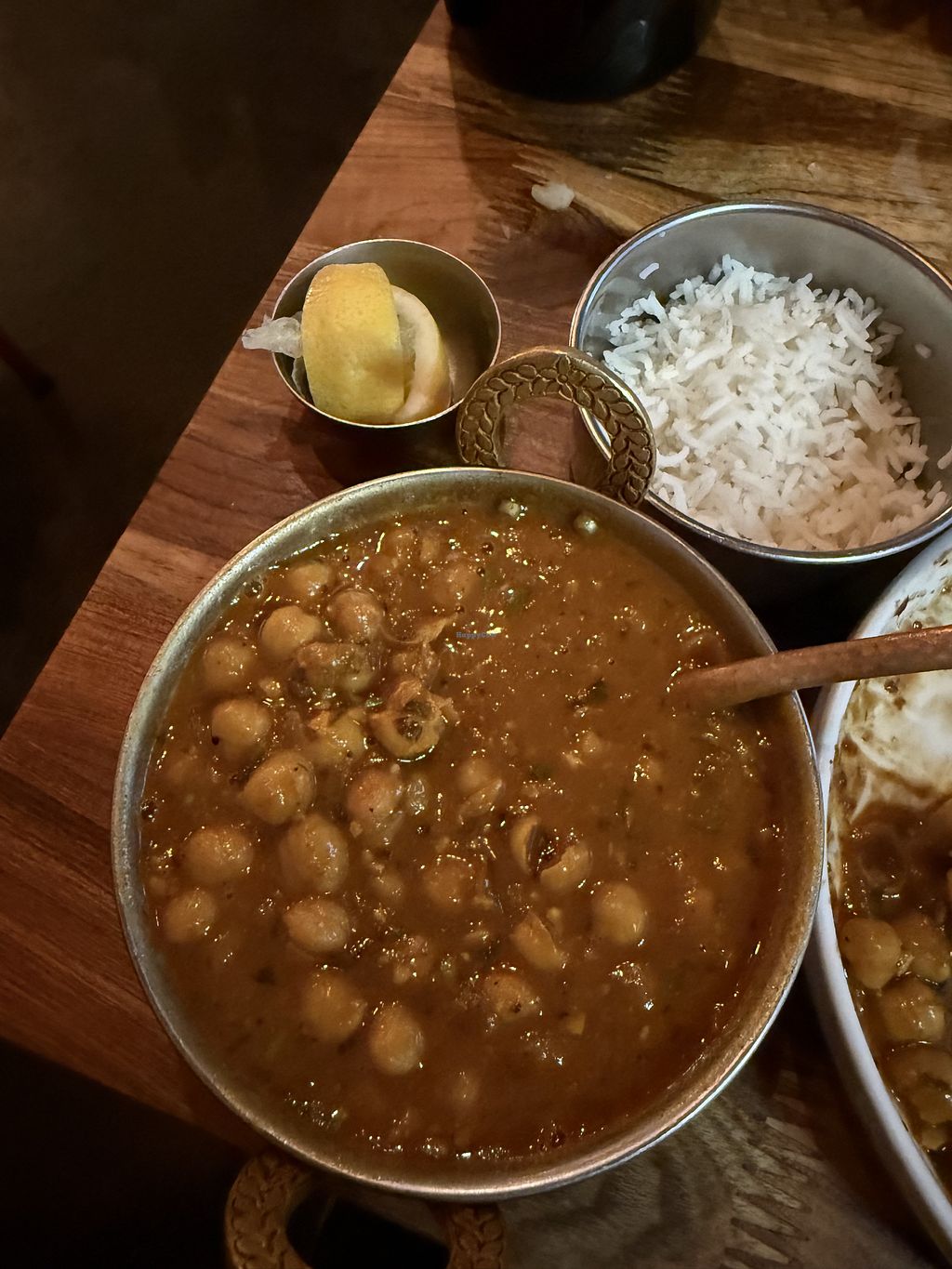 The lovely atmosphere and service were the first things to strike me when I walked into this place. Was an enjoyable meal too however the only vegan dish could’ve been more exciting than just vegetables in sauce - I wish they had more vegan things on the menu, and vegan naan! Portion size was perfect. Had a df roti which was pretty good. Great place to go with friends to catch up.