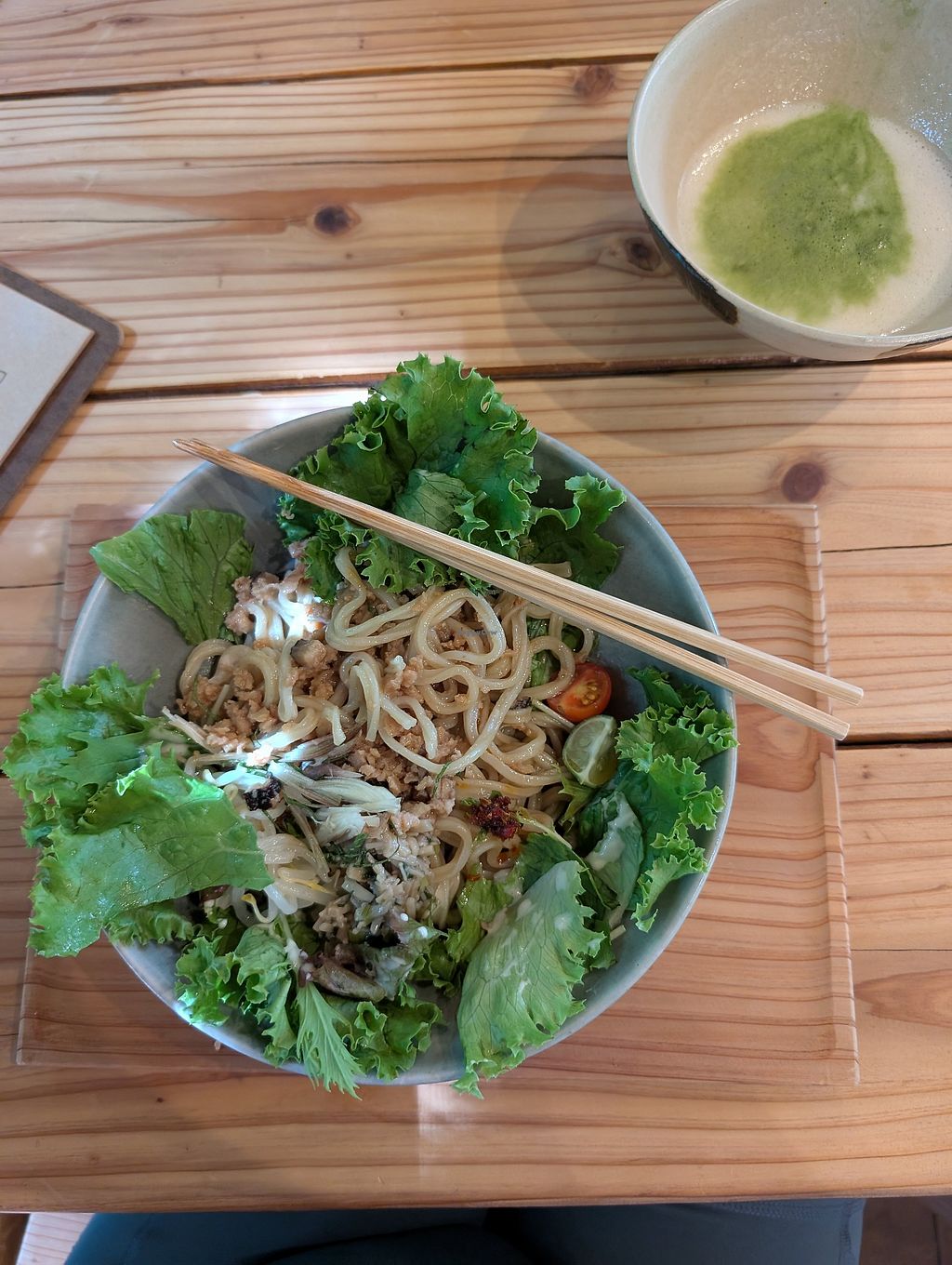 Read moreI had the Cold soba noodle salad, matcha and a raw mango cake.