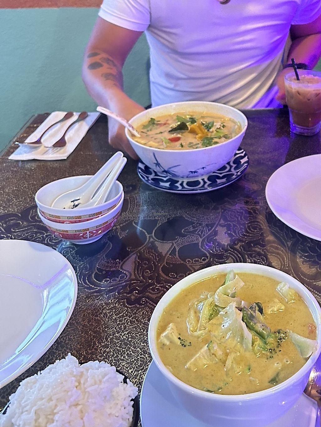 my favorite thai food in town! The negative reviews are genuinely confusing to me. Their vegan yellow curry is the best i’ve ever tried! Cashew dish is my second favorite. Pad see ew, papaya salad, and stir fries are all amazing options, too! They know what vegan is and are very accommodating. Coconut milk is available for thai tea. The service can be hit or miss and there’s a little dust (it’s hilo…) but the food NEVER misses. I always bring people here when they visit town, it’s a true crowd pleaser.