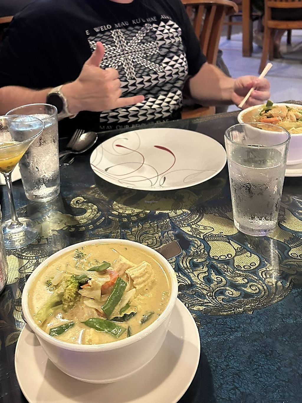 We went here twice during our trip to Hawaii. Both times we ordered the veggie spring rolls, Phad se ew; & pineapple fried rice. The waitress was very nice and helpful. She had no issue with us requesting no animal products. The food came fast and was super flavorful. The only negative was that there is no soap to wash your hands with in the men’s room.
