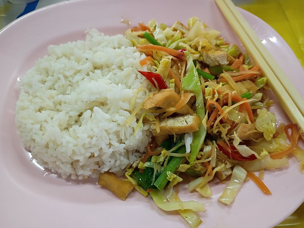 Instead went with large serving of fried mix vegetable and sweet basil with large serving of white rice came with
