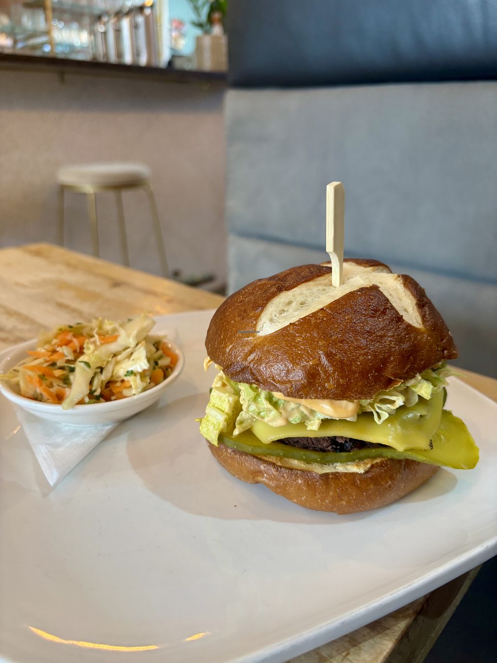 I really enjoyed my meal here and the atmosphere as well. I ordered the Southern Burger with a small Caesar salad and it was delish. Originally picked this restaurant for the pretzel bun burgers and it didn’t disappoint. Does have pretty limited alcohol options.