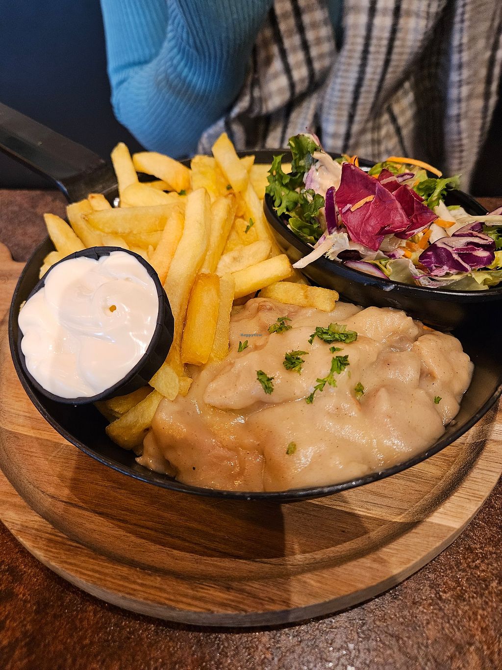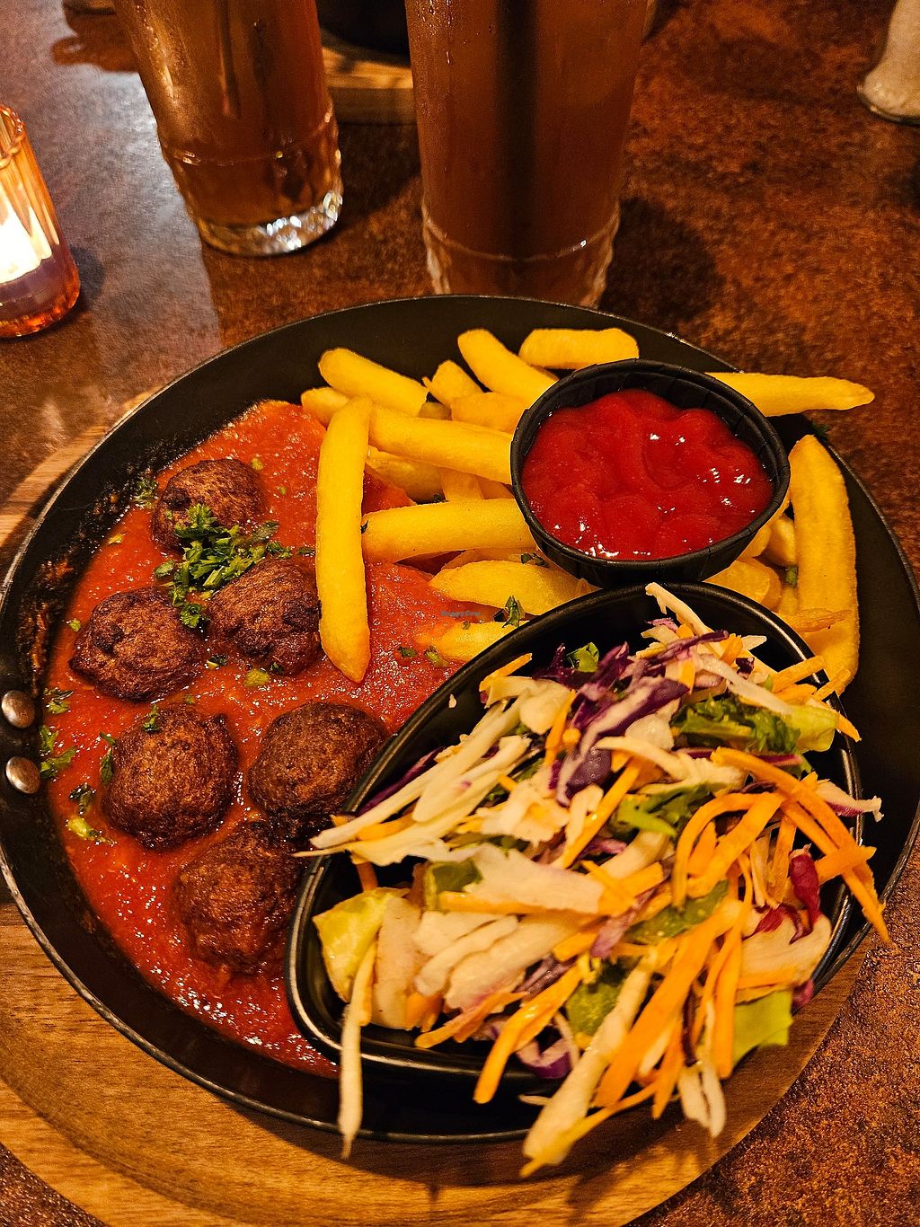 Lovely staff and the art work is funny. Really liked the batterballen. Had the stew for a main which was really generous with the portion size and there was lots of the fake meat but the flavour wasn't that strong, maybe that is authentic though I have nothing to compare it to. I'd go for the burger next time
