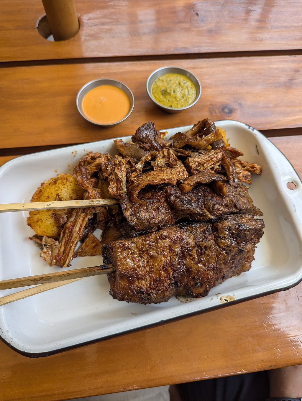 Read moreI wasn’t too sure what we ordered since everything was in Spanish. My partner’s combo dish (“solita me jaraneo”) came with potatoes, and underneath the anticuchos was a different kind of seitan that I realise now was a substitute for grilled tripe. The texture and taste of this was also crazy good!