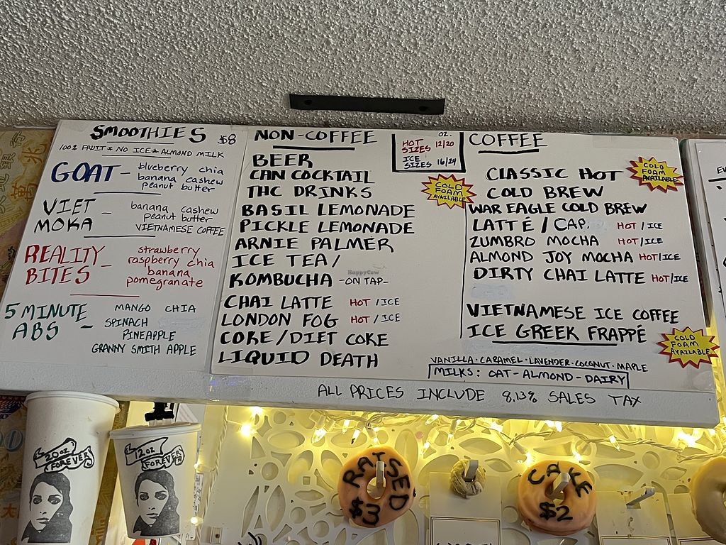 Pros: only plant-based restaurant in area, reasonable prices on food and merch, yummy smoothies and donuts