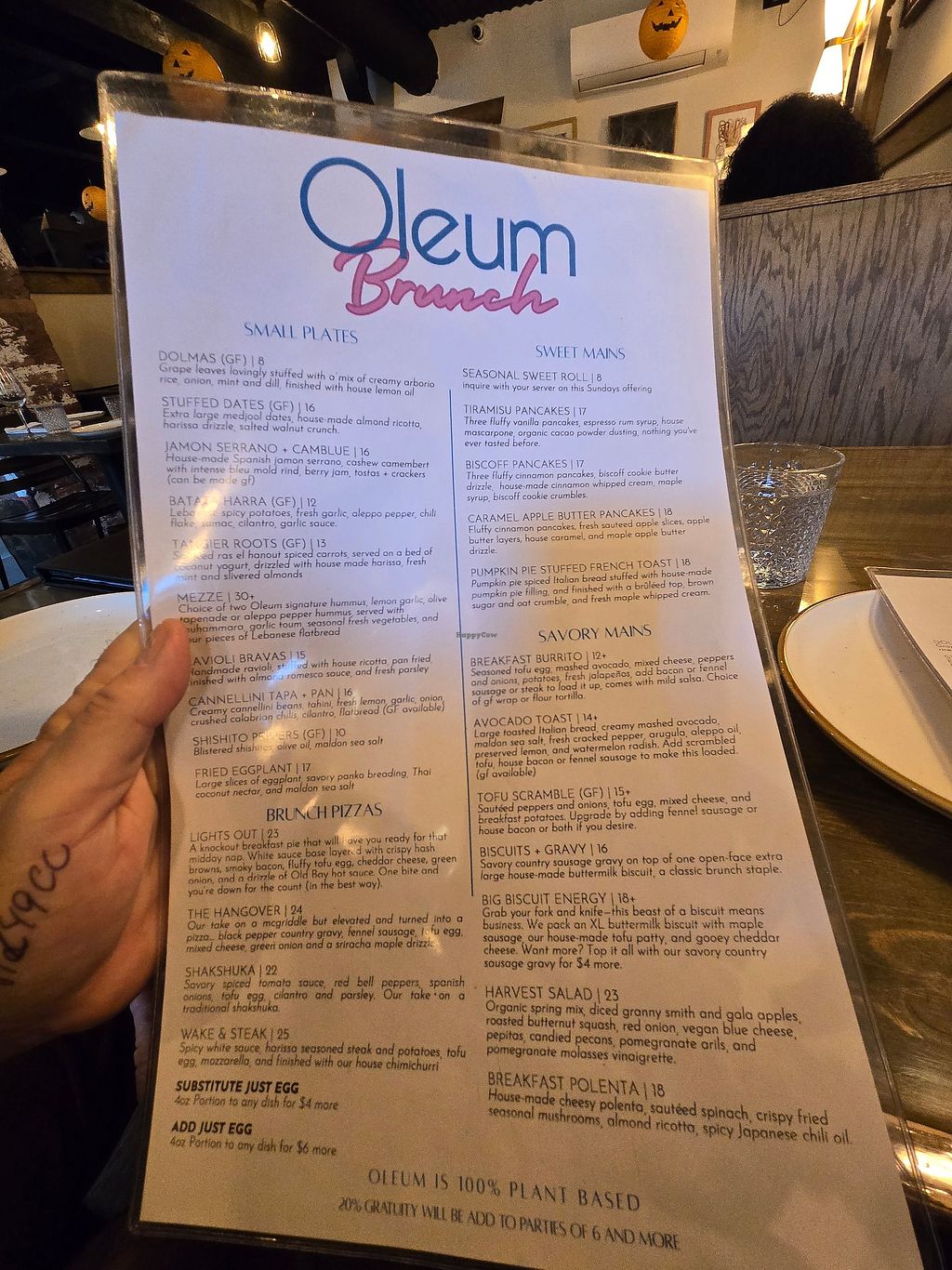 All plant-based food, lots of gluten-free options, wonderful staff, Oleum has it all! We ate here for brunch, and it was busy. I'd recommend a reservation at peak times.