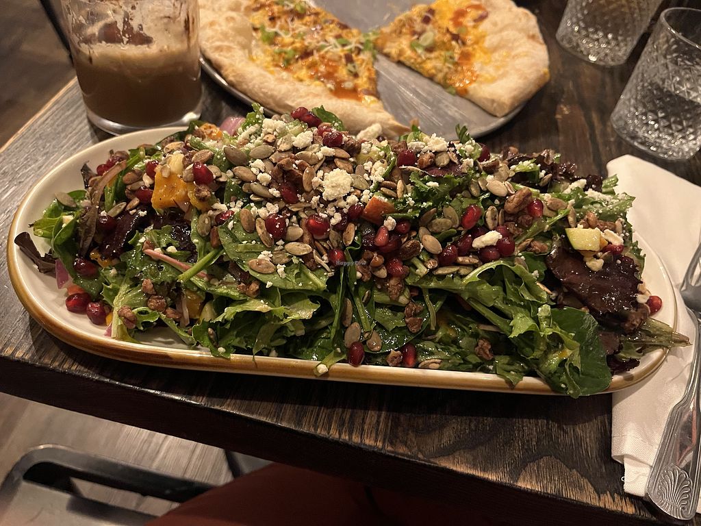 I've been here four times for dinner and have gotten different things each time. Standouts so far are the Jamon serano camblue, ravioli bravas, the fried eggplant, the wedge salad (one of my faves overall), and the Toum Raider pizza. The pastas have been underseasoned each time (tried 3 of them) which was unfortunate. I also tried the meat lovers pizza which was also good but thought the Buffalo chicken pizza was too salty. The kale Caesar, tomato bisque, and tangier roots were all solid but none of them really stood out to me. The tiramisu is fantastic and cookies were good. The sticky toffee pudding was good but not enough sickness for my taste, it was more so just a cake.