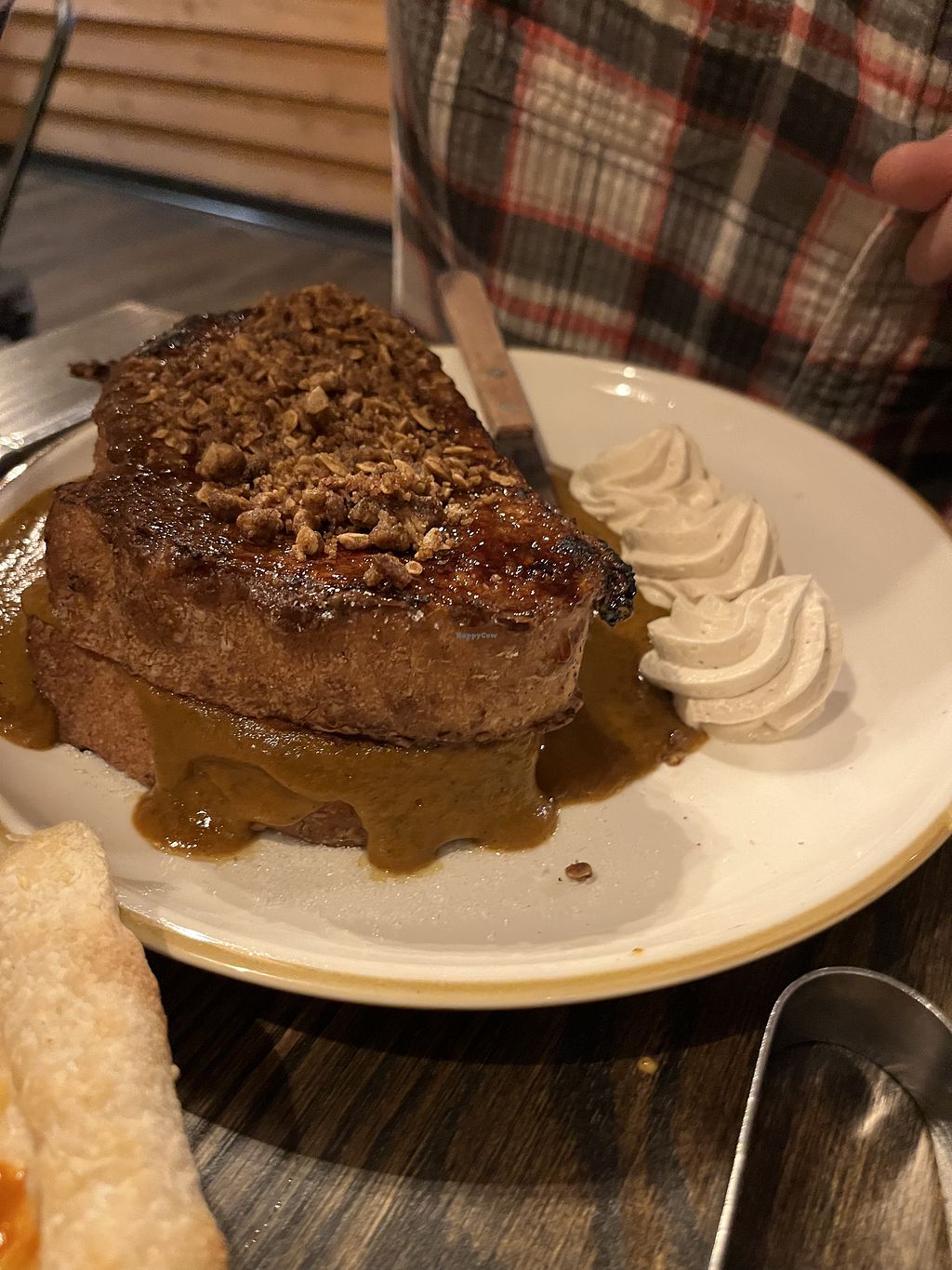 My husband is in a wheelchair and we didn’t know the entrance had steps. But a couple that was also camping for brunch and one of the employees helped and we got in without an issue. Brunch was so tasty. Cinnamon roll, scramble tofu and hand over pizza. YUM. We had ordered takeout a few times in the past but it was nice to enjoy their new location.