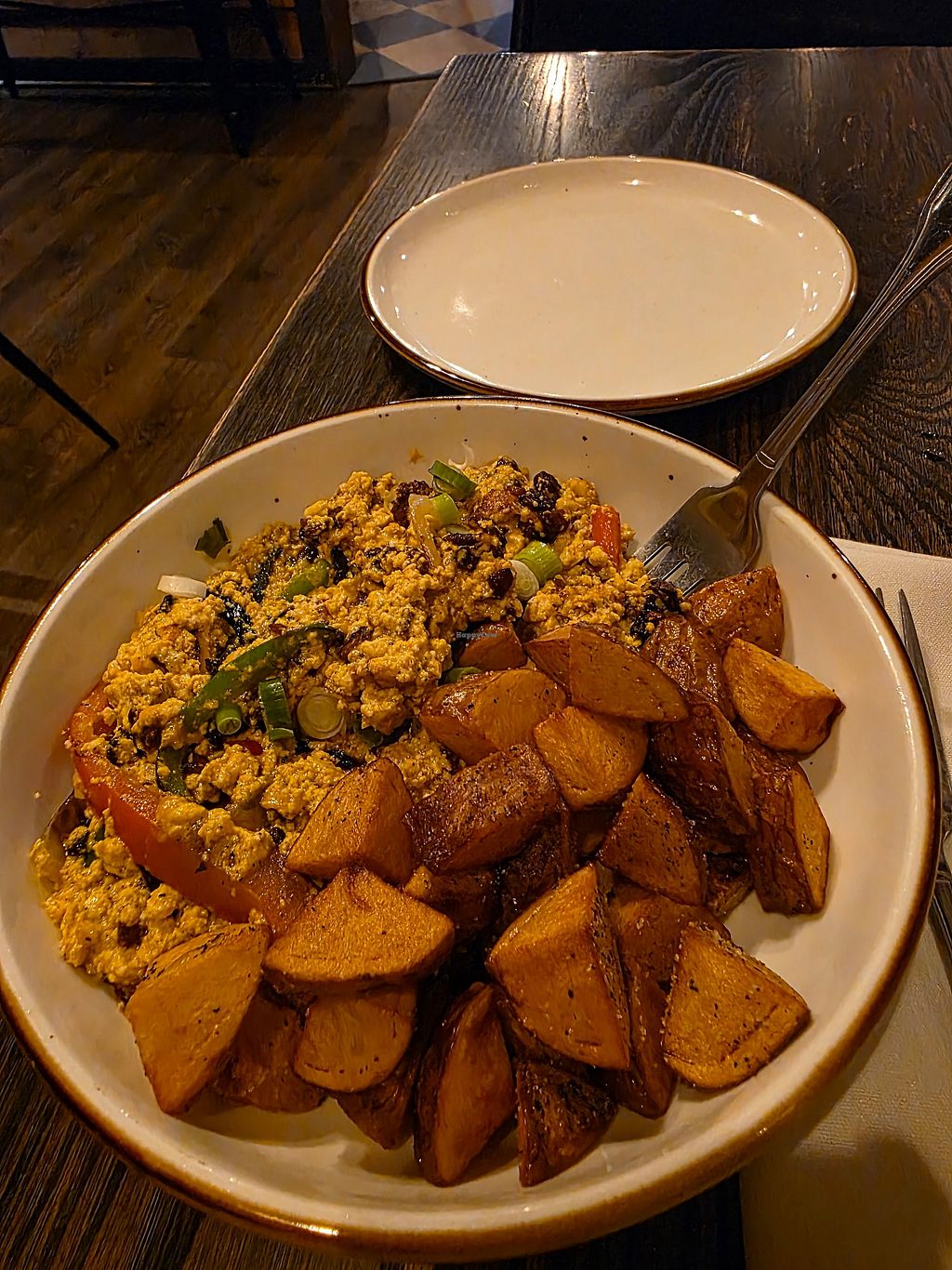 Huge menu! Went with the tofu scramble and it was so good. Great portion of food and very filling. You may want to make reservations. I got there at noon and they were already packed but so worth it. Their desserts are also amazing.