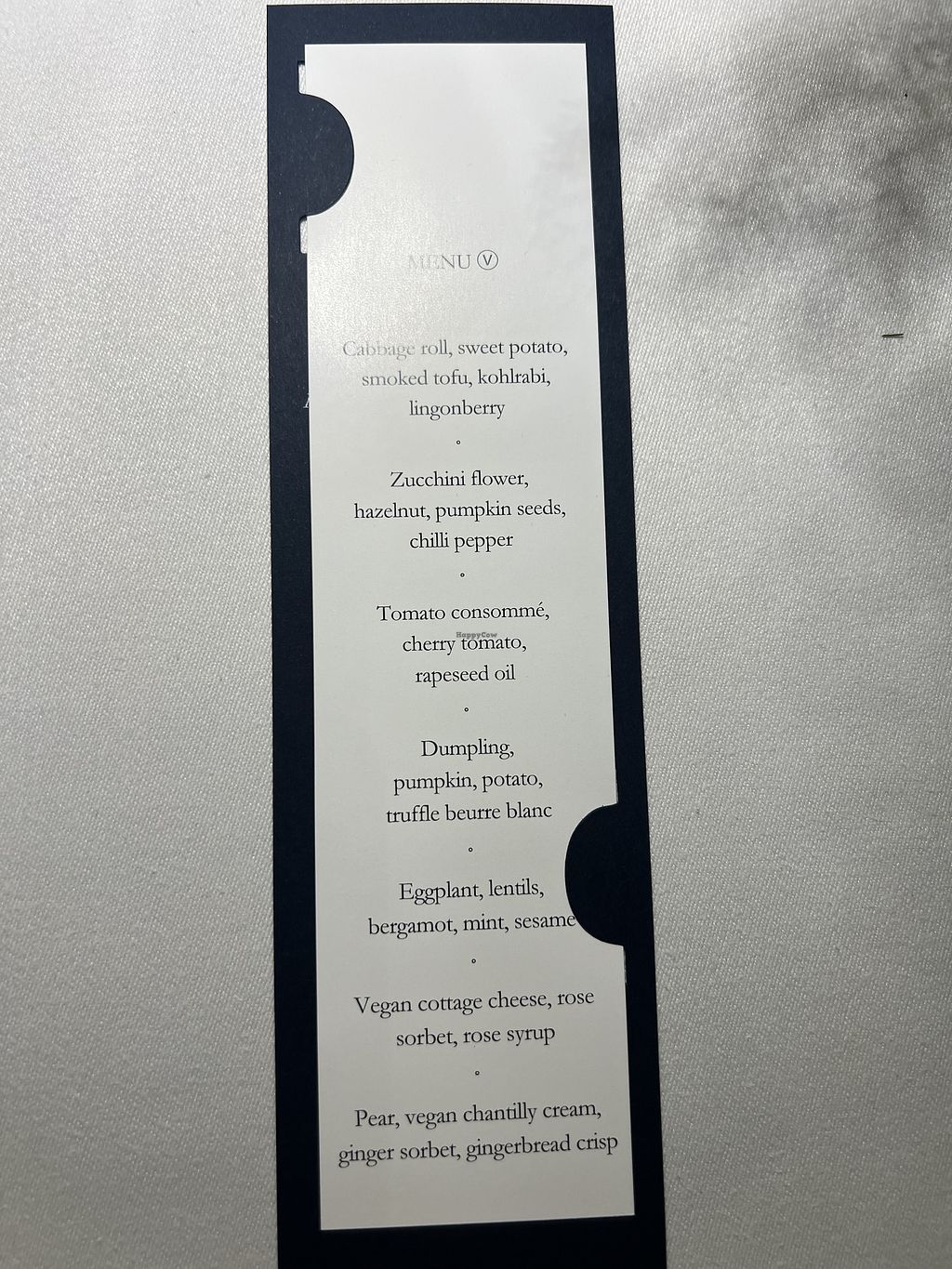 Great vegan food, very very tasty fine dining and good service. They have a full tasting menu. Just make sure to mention that your vegan when you go there.