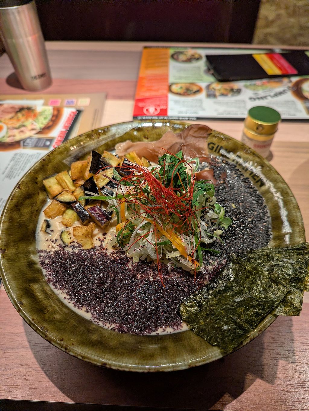 I got the Zesty Vegan Ramen and it was to die for. Absolute must have for vegans in Osaka. Really creamy with some spice.