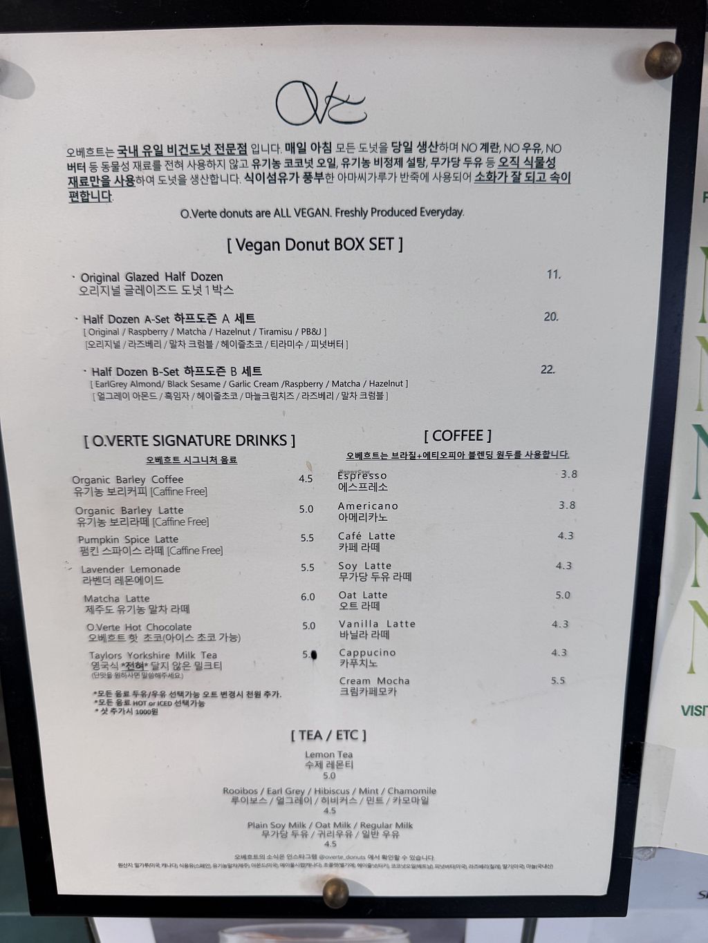 Tried both the matcha donut and the hazelnut chocolate donut, both were delicious! When vegan options are relatively hard to come by in Korea, we really enjoyed this with a coffee.