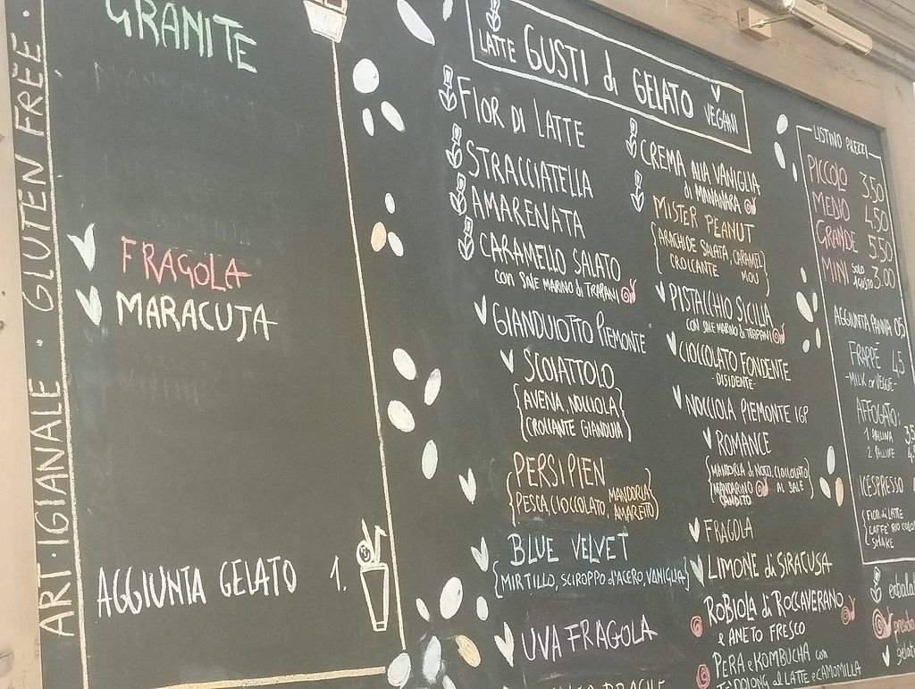 A lot of vegan options, including pistacchio salato (not just sorbetto)! Also the cone is vegan. I took also the special flavour " pinolo veg".