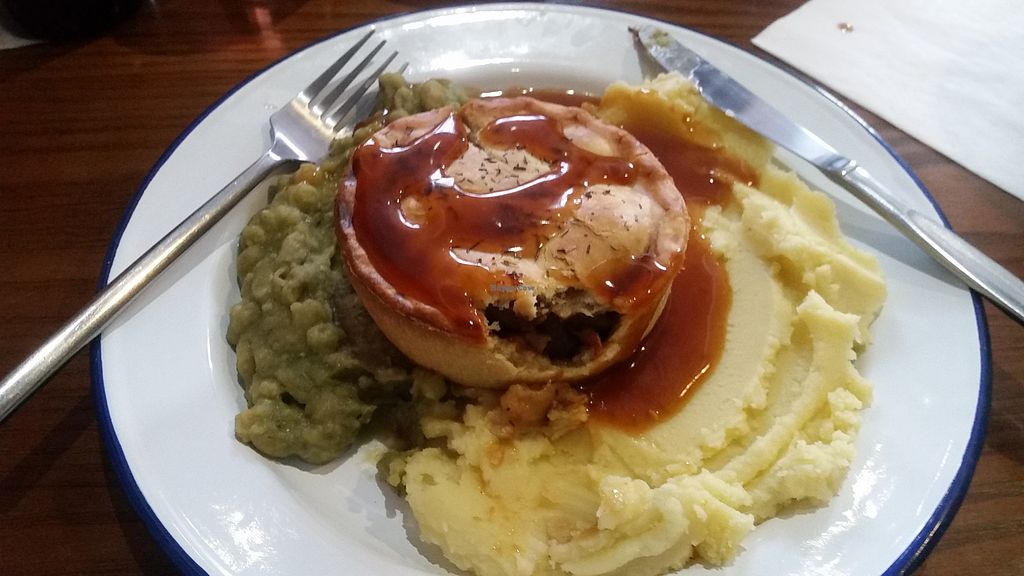 Had a "not dog" pie which was a veggie sausage pie and my boyfriend had the "porky pie" which was a BBQ style pulled jackfruit pie. Both were vegan and delicious. There were 2 other vegan options on the menu as well as some vegetarian options. Staff were lovely and helpful. Went on a Sunday at midday and was very quiet. A perfect place to go with your vegan/veggie friends or with your meat eating friends and family. Something for everyone (as long as you like pies)