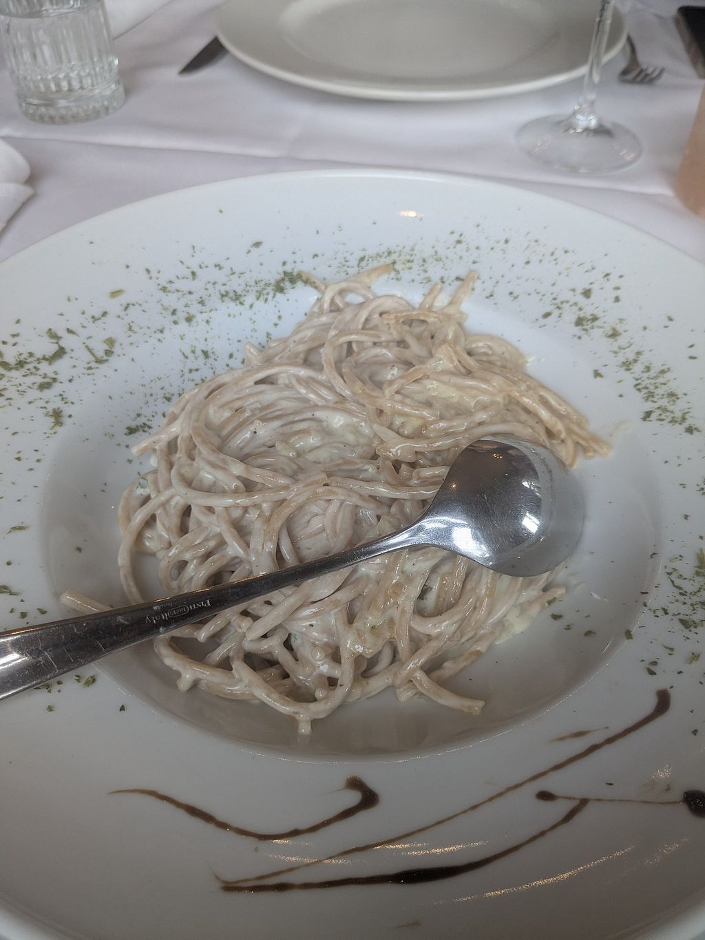 I’d like to give a vegan place a better rating but hmmm. First we were a bit surprised with the ambiance which felt too chique for what it was. Told the - very kind! - waiter that we were just looking for a quick bite (didnt have much time on the parking meter) but he assured is that was okay but still took very long even though we were the only ones, making us feel kind of trapped. Half of the menu was unavailable, for the food ánd drinks. They said the pasta was fresh but I don’t think so, it was way too much salt though. Fortunately we had free tap water.