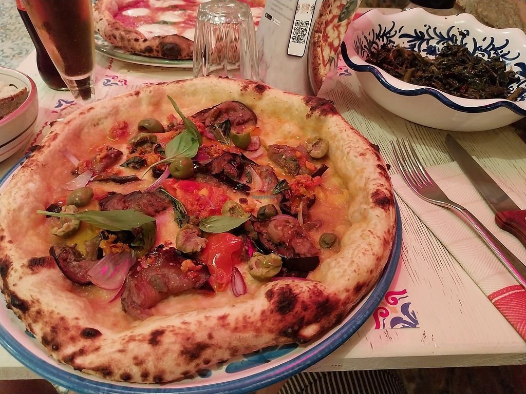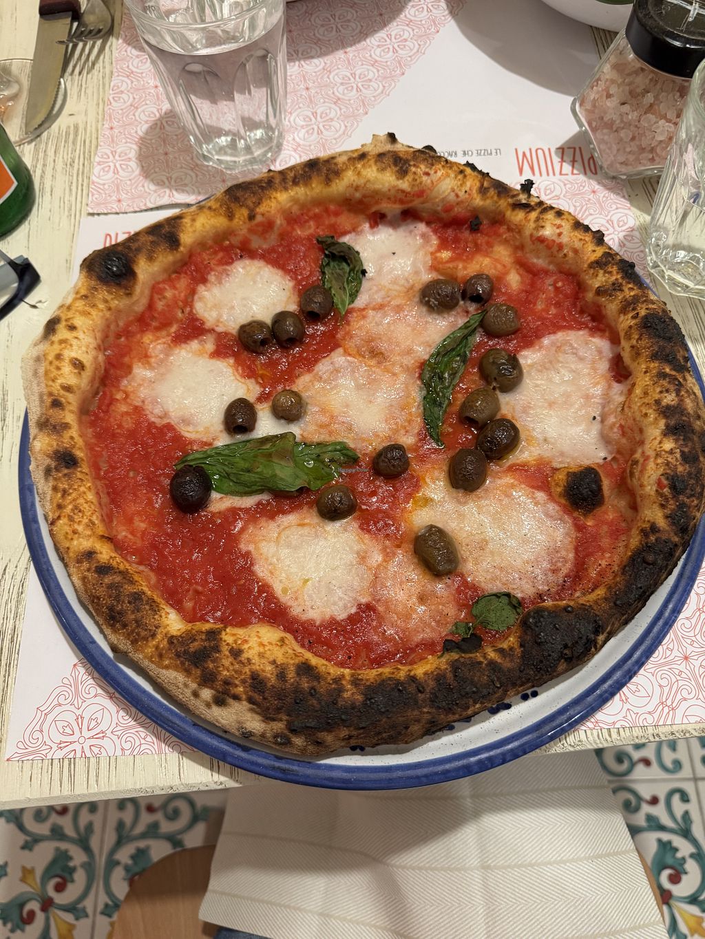 L’impasto napoletano mi è piaciuto, ma la mozzarella, le dimensioni un po’ sotto la media e il prezzo…. Una margherita a 11 euro per me è un po’ troppo. Penso che la mozzarella vegana che hanno usato non sia adatta a sostituire la mozzarella vera per via del fatto che ha una consistenza più da formaggio cremoso che da formaggio a pasta filata. La mozzarella è comunque buona, ma sul mercato c’è ne sono di più adatte da usare su una pizza.